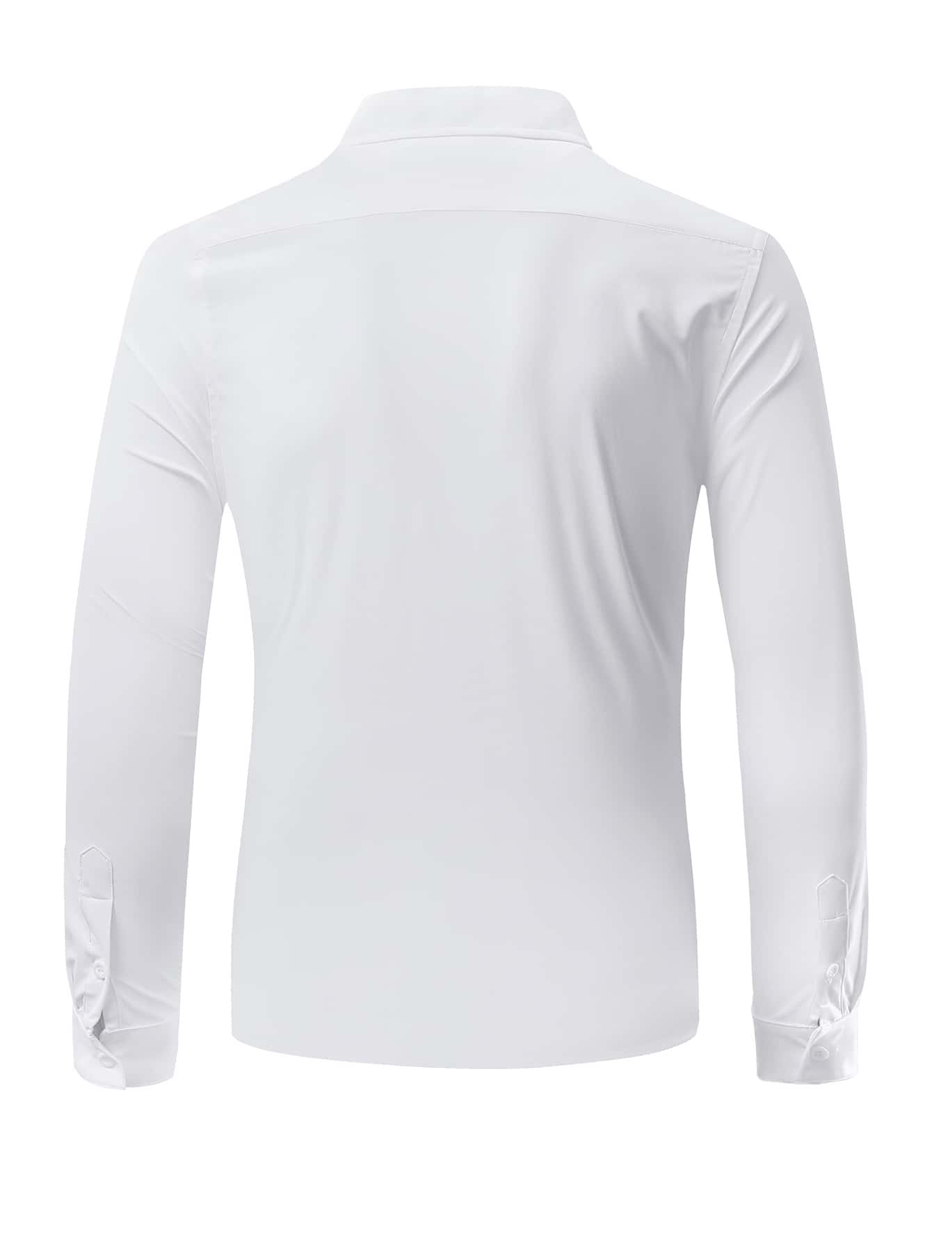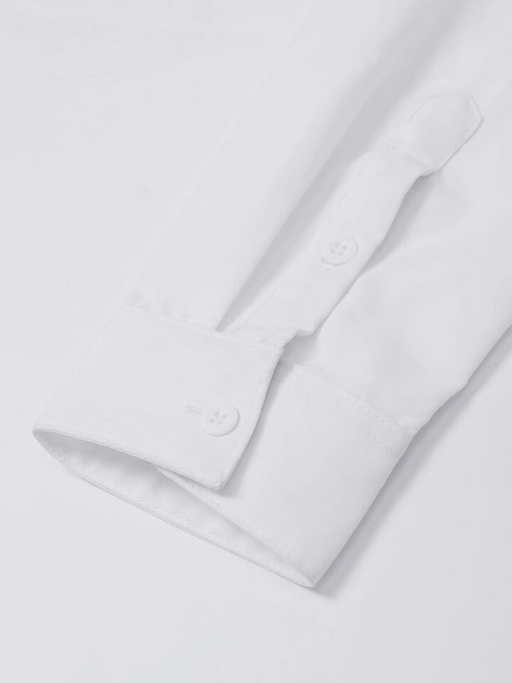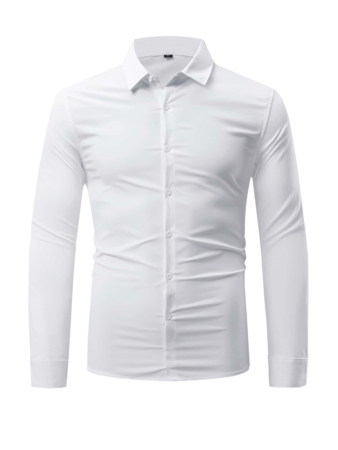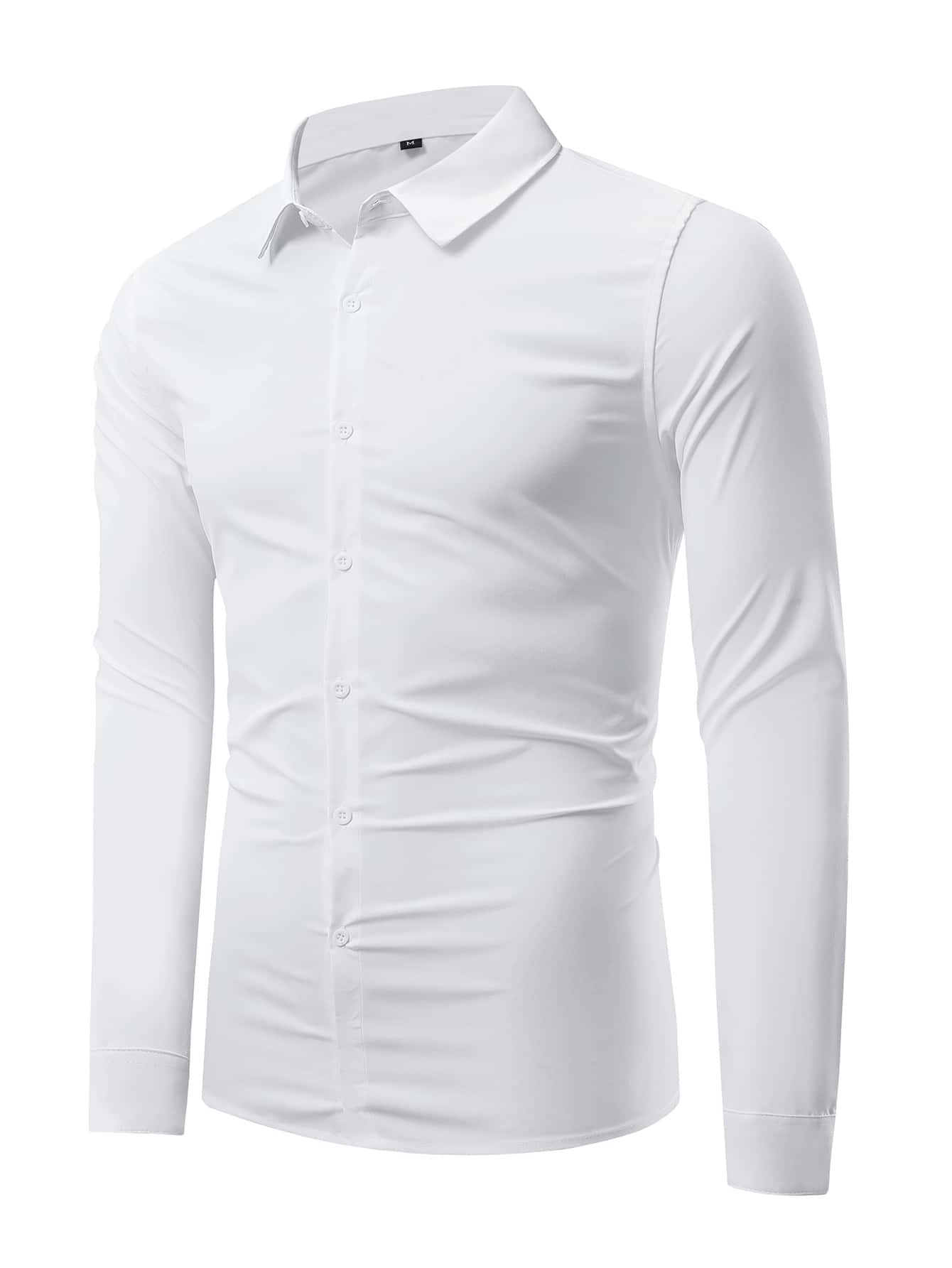 قميص رجالي بأزرار أمامية وقصة ضيقة وأكمام طويلة، قميص كاجوال للعمل باللون الأبيض بالكامل