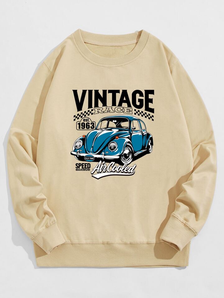 قميص ثقيل بجرافيك عبارة سيارة للشباب