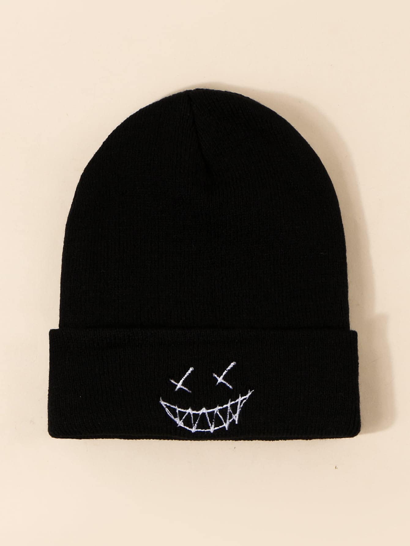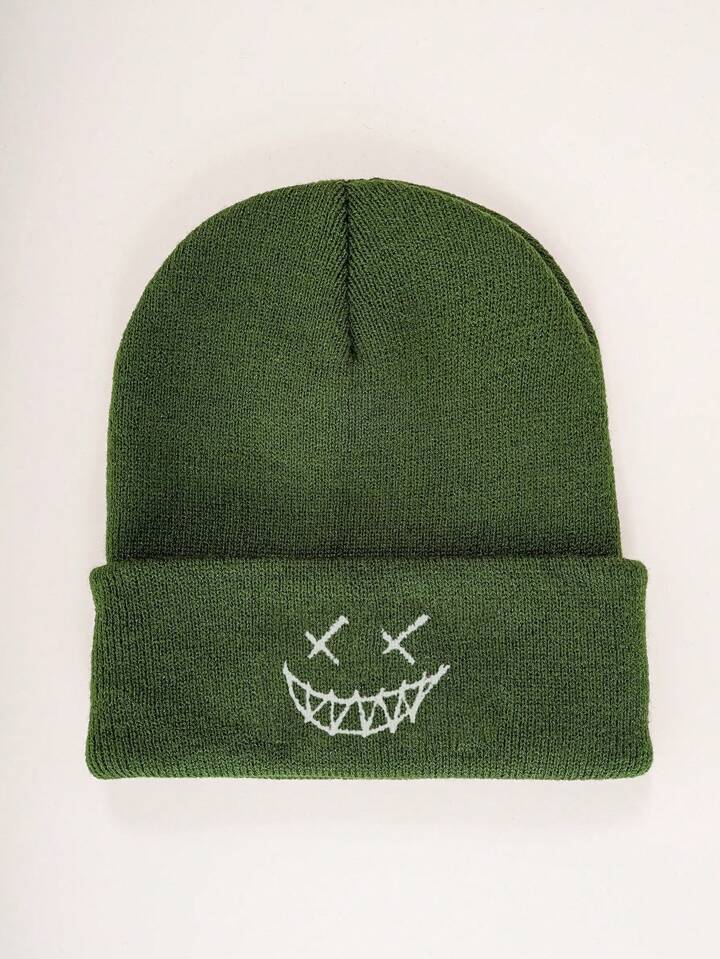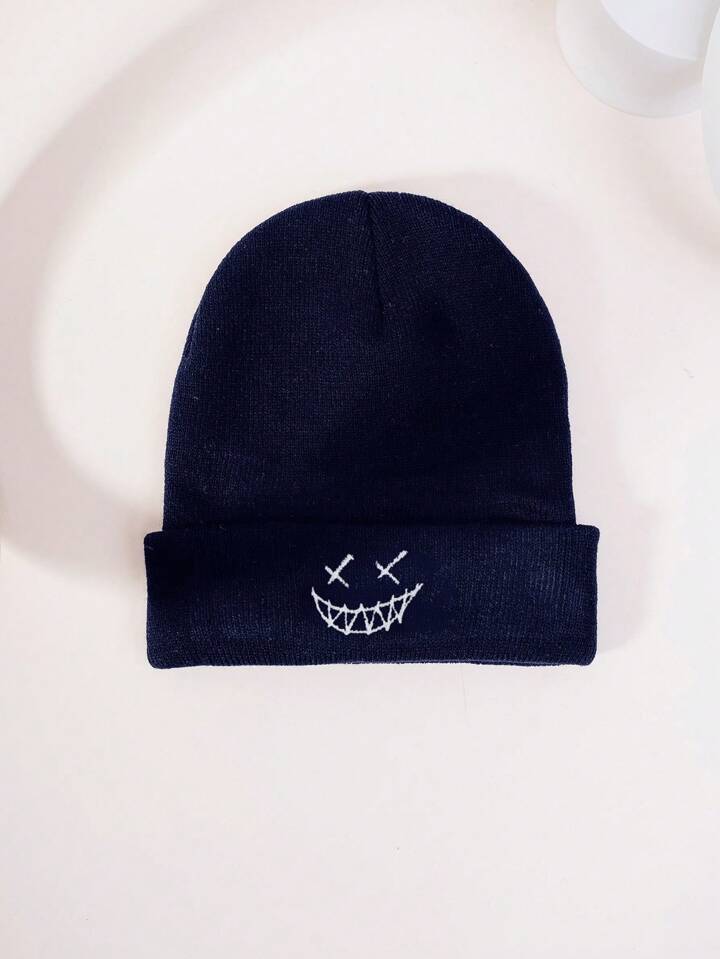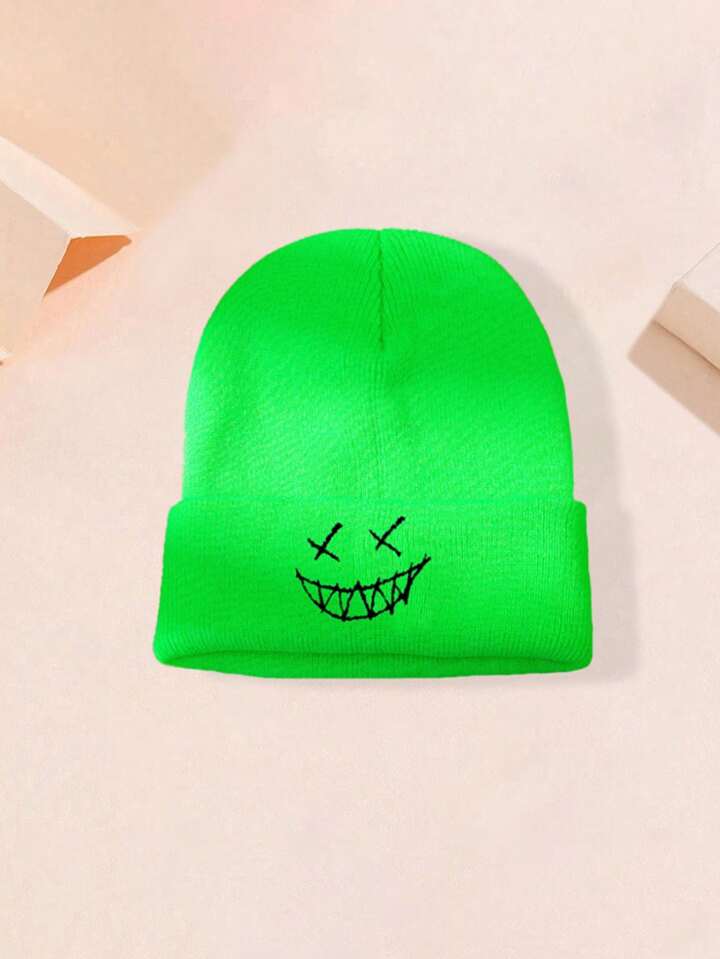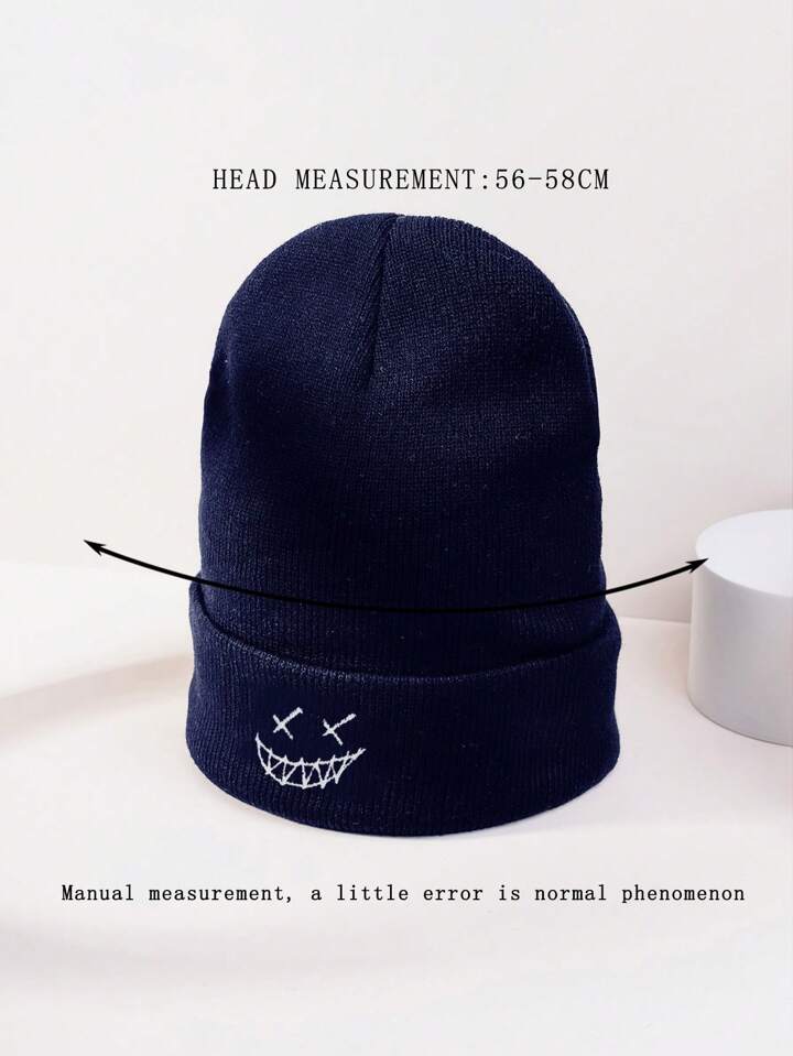 قبعة شتوية محبوكة مرنة للخريف والشتاء، للجنسين، عصرية بطراز الشارع، مطرزة بالوجه، تدفئة للرأس، لباس جمجمة عارضة