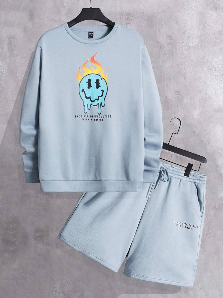 للرجال صور رسوم كارتون قميص ثقيل & رباط خصر بنطلون قصير