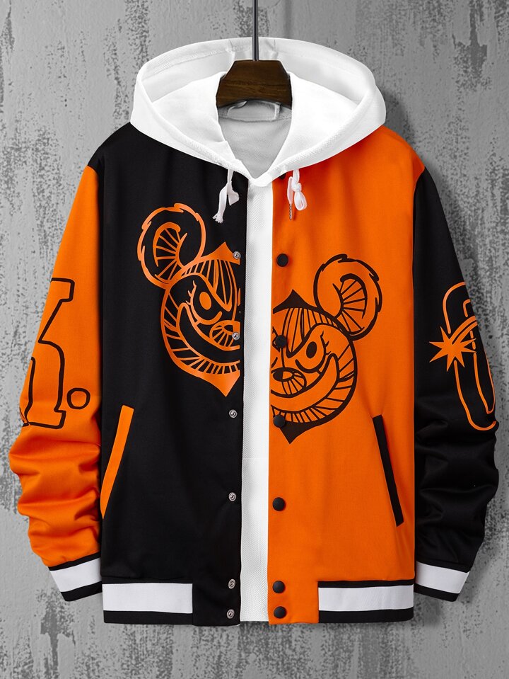 سترة فضفاضة للرجال برسوم كارتونية ذات لونين بدون قميص من النوع الثقيل