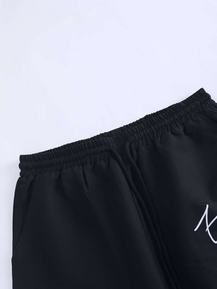 شورت رجالي فضفاض برباط يتضمن رسم كرتوني وطباعة بالحروف