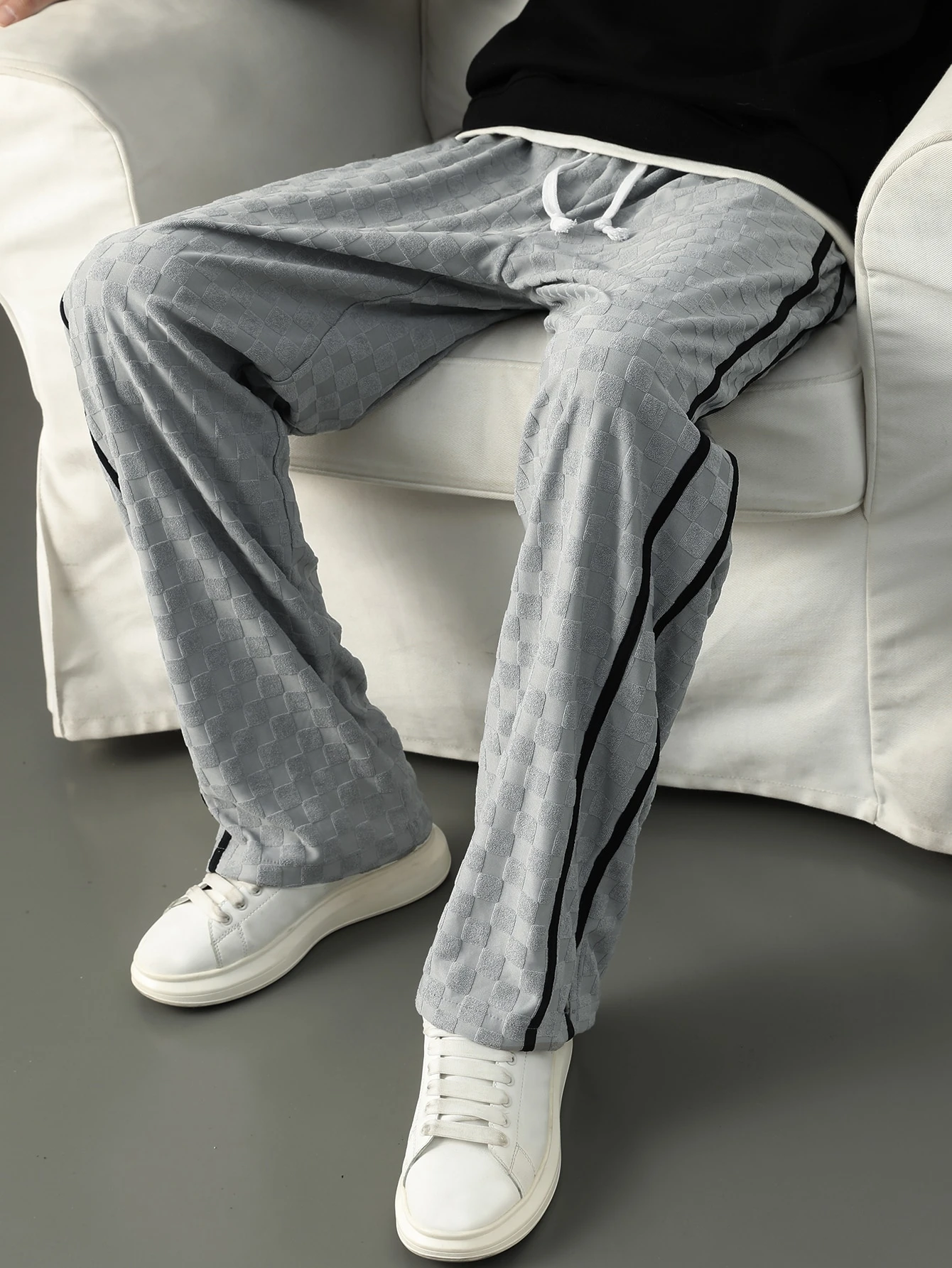 بناطيل رياضي بطباعة مربعات مخطط جانبي رباط خصر للرجال