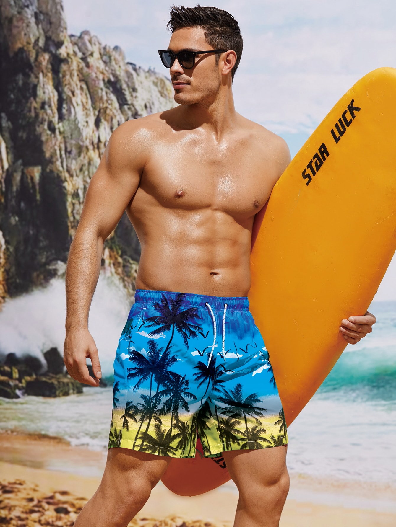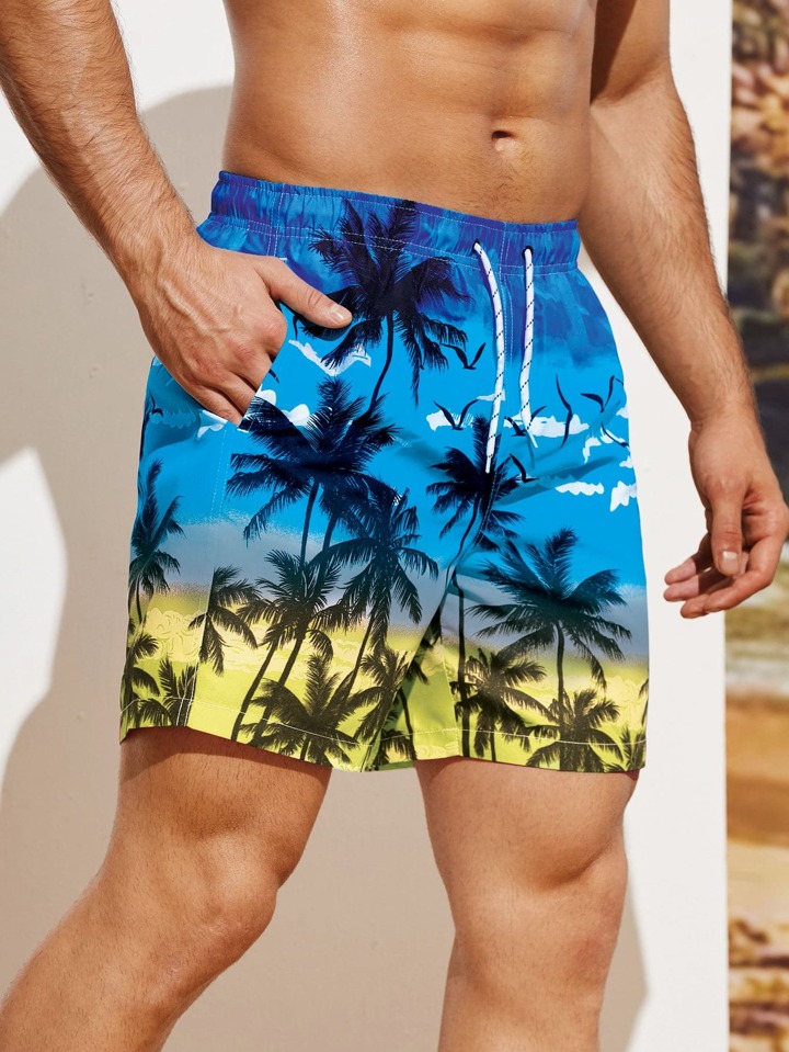 شورت سباحة ترانك طباعة شجرة جوز الهند رباط خصر للرجال
