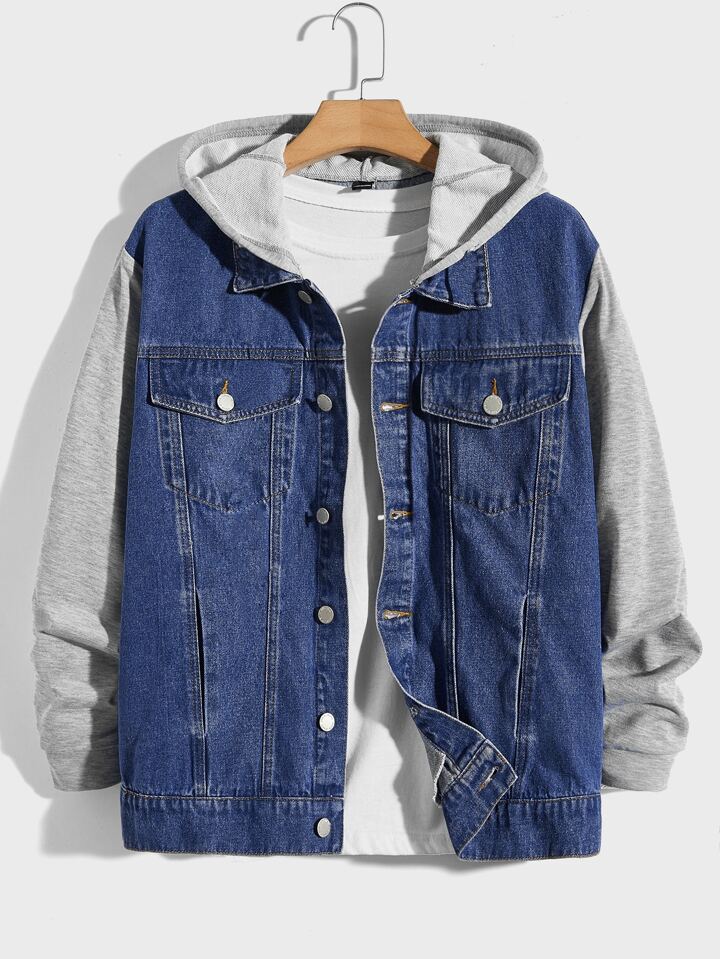 جاكيت دنيم ألوان متباينة رباط قبعة للرجال