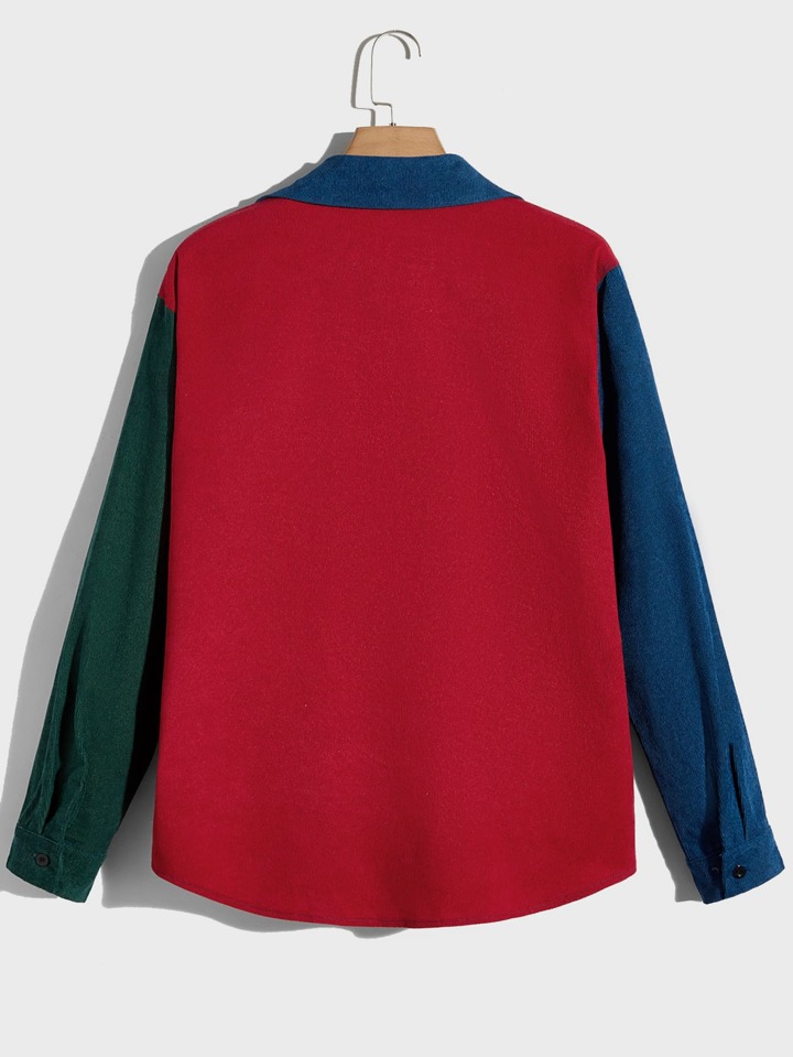 قميص ألوان متباينة مطرز بحروف أزرار أمامية للشباب