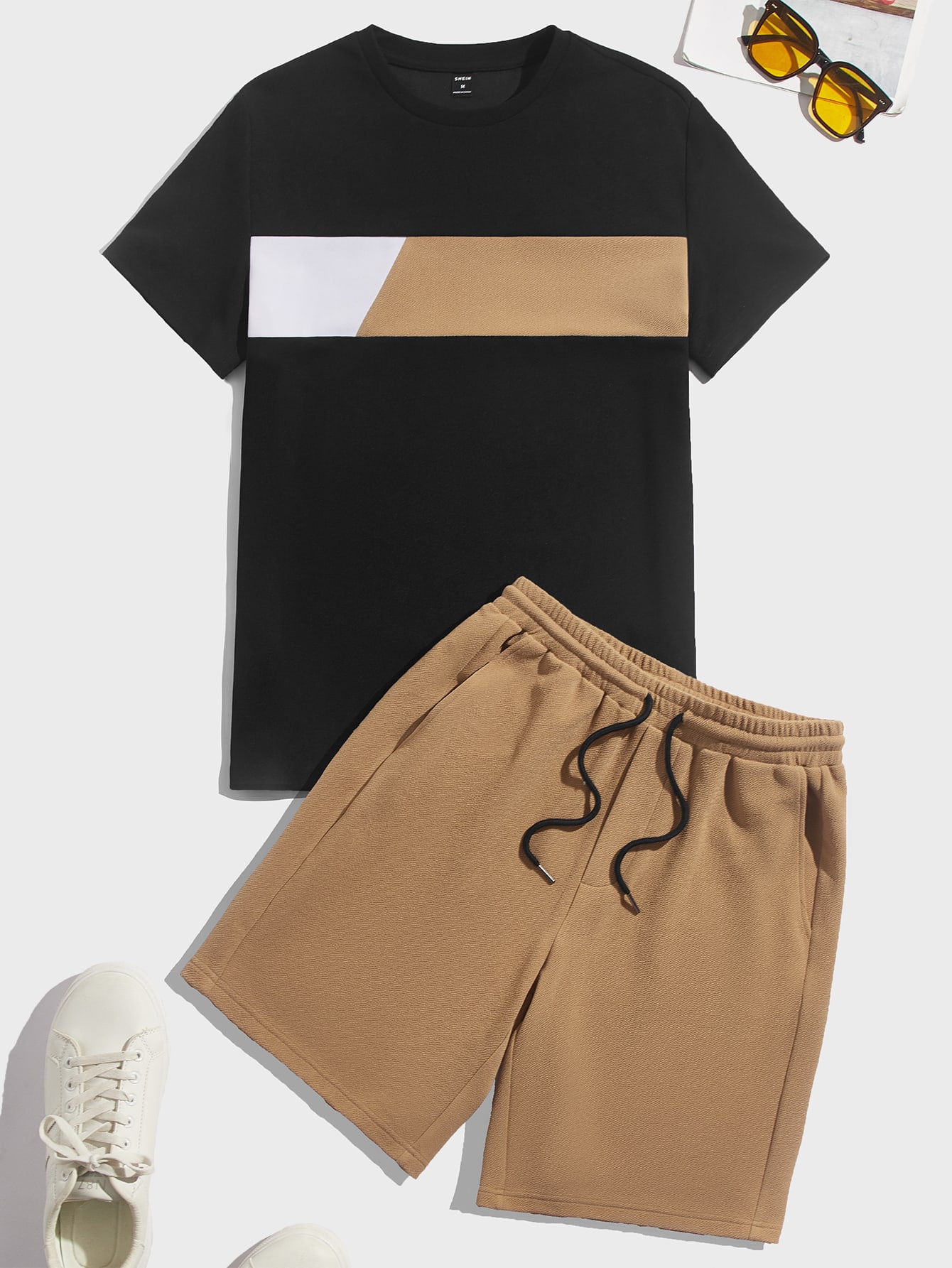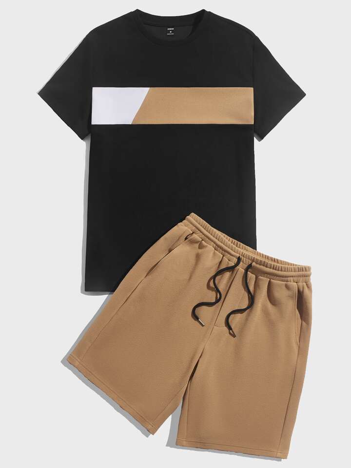 للرجال ألوان متباينة تي شيرت و رباط خصر بنطلون قصير