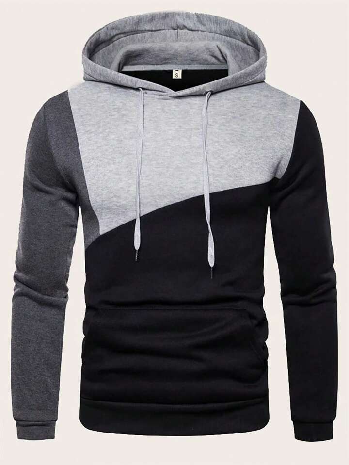 سويت شيرت مقنع برباط مع قص وخياطة للرجال
