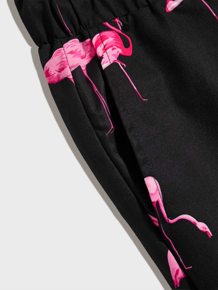 شورتات الرجال بخصر قابل للشد مطبوعة بطبعة الفلامنغو، عريضة مع طبعة جرافيك مميزة وملونة لقضاء عطلة على الشاطئ
