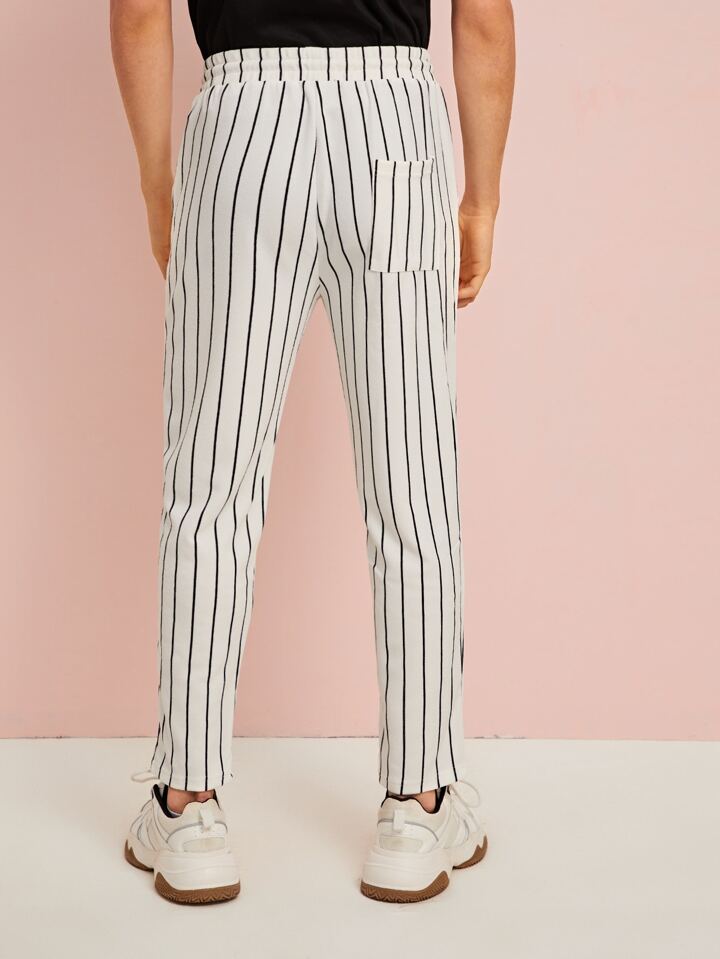 سروال مخطط بجيب مائل وبأربطة خصر للشباب