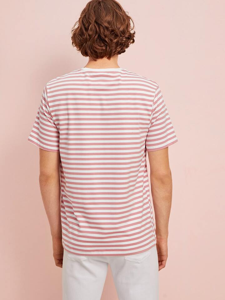 تي شيرت مخطط مطرز بالأزهار رجالي