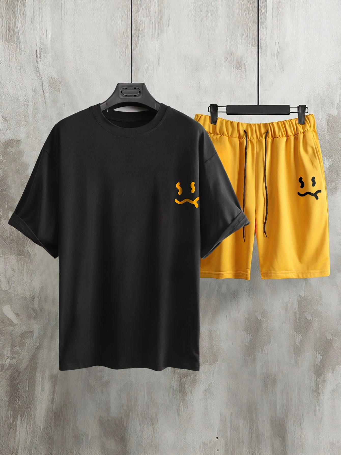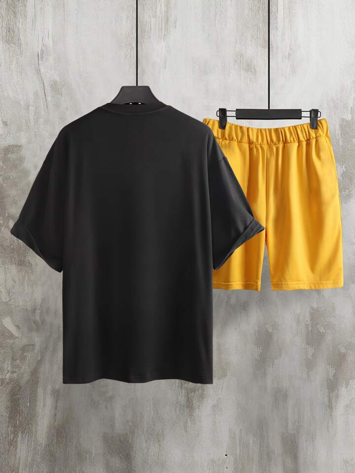 للرجال بطباعة تعابير تي شيرت و رباط خصر بنطلون قصير