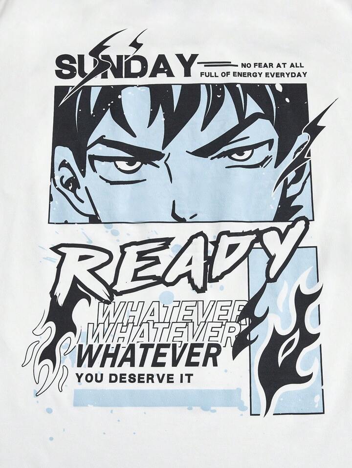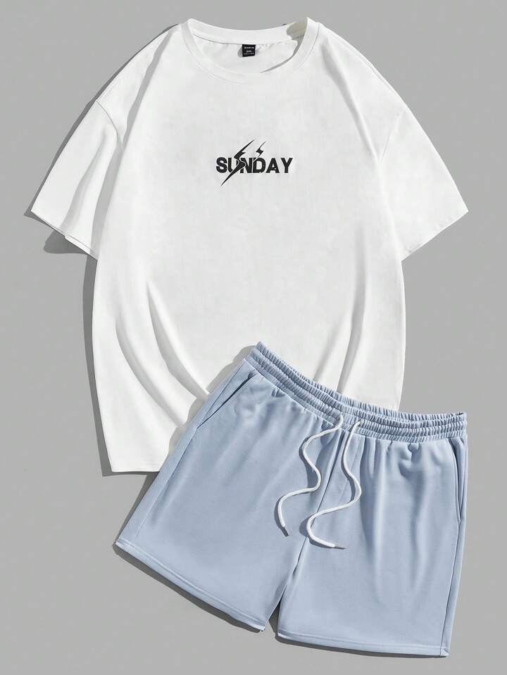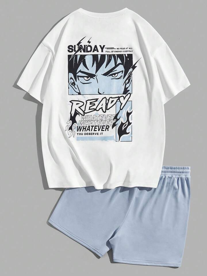 رجال مقاس كبير تي شيرت بجرافيك شعار وشخصية & بنطلون قصير رباط خصر