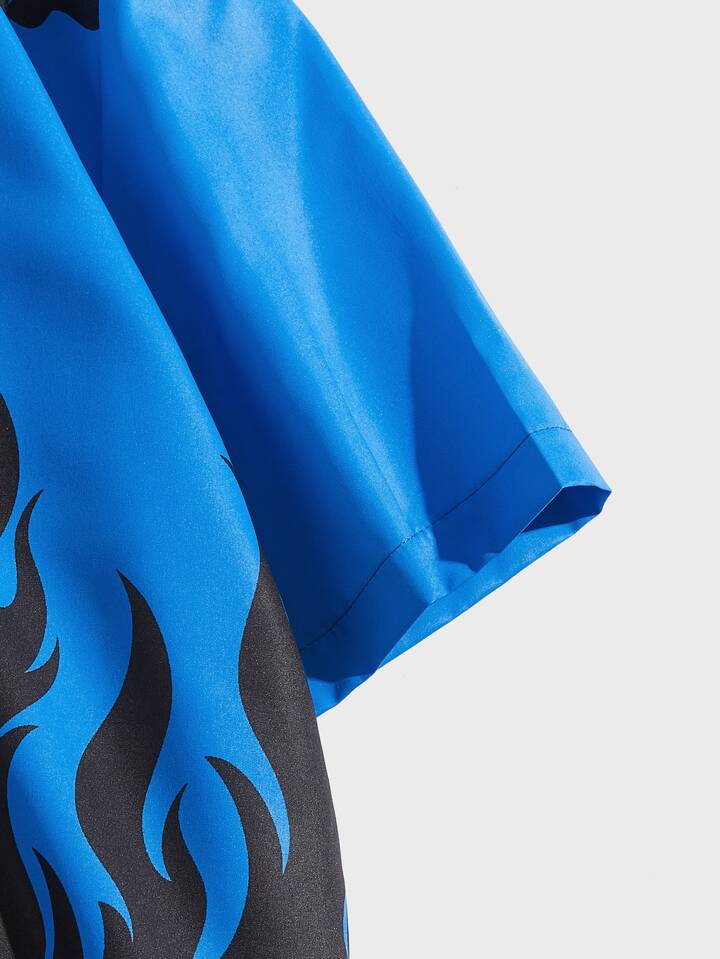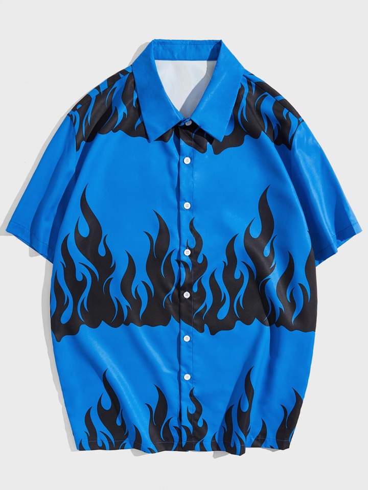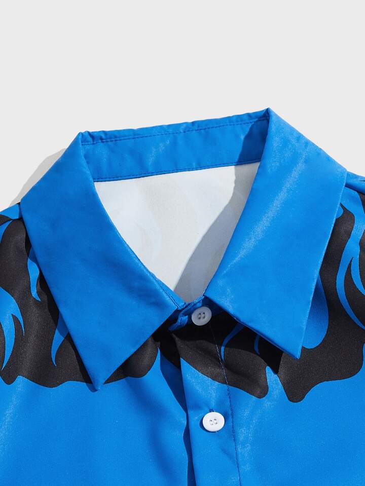 قميص بطباعة نار أزرار من أعلى إلى أسفل للشباب
