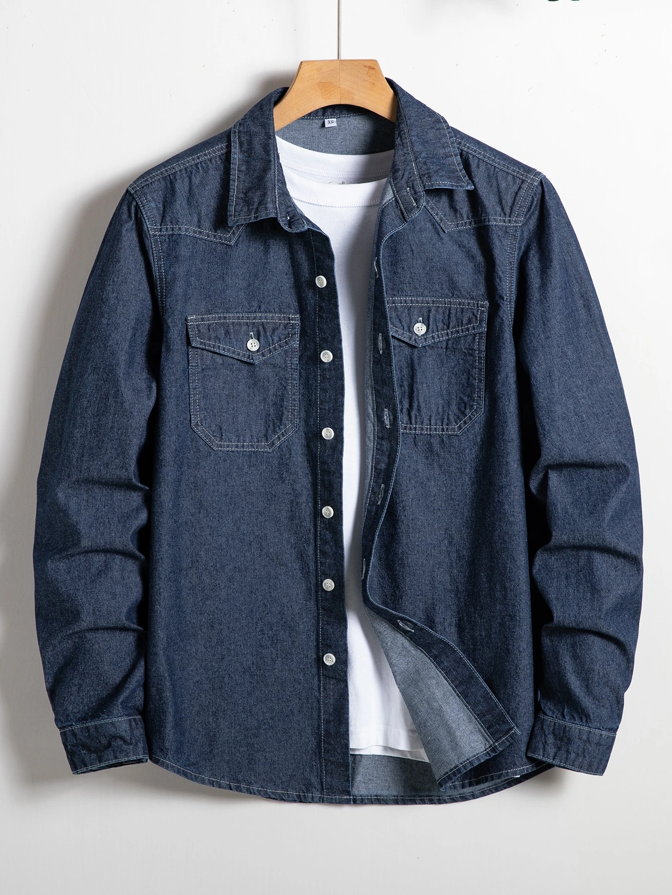 قميص دنيم جيب قلاب بدون تي شيرت للرجال
