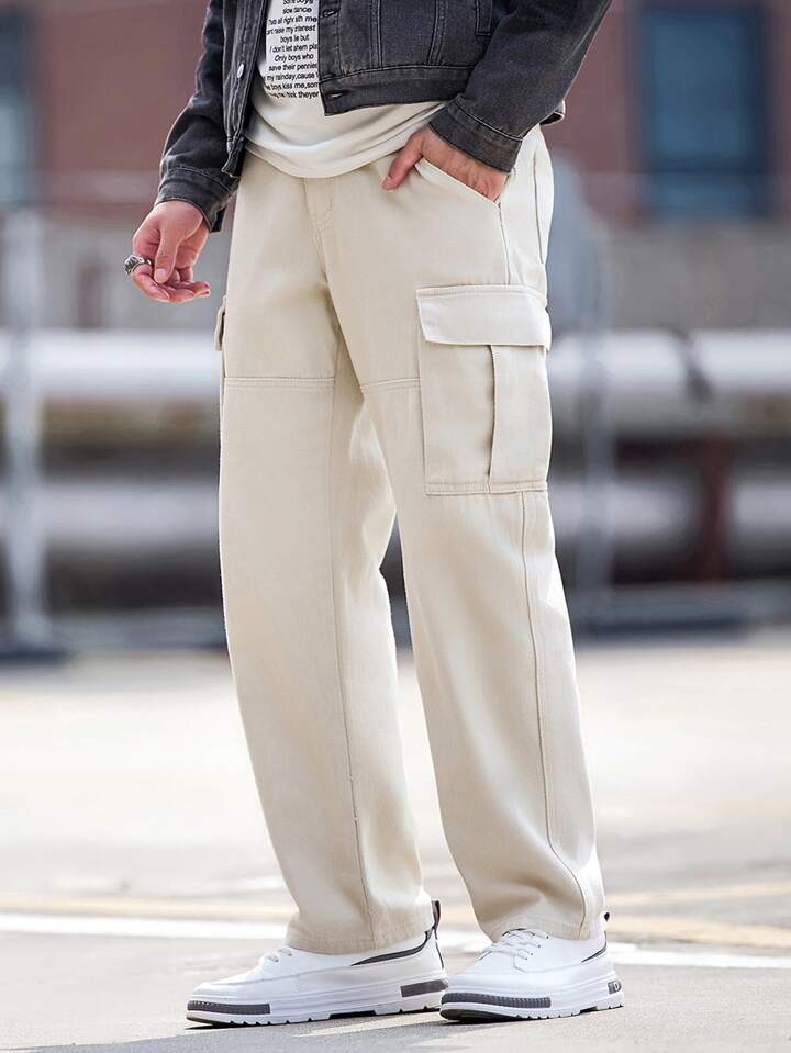 بنطلون جينز كارجو جيب جانبي قلاب للرجال