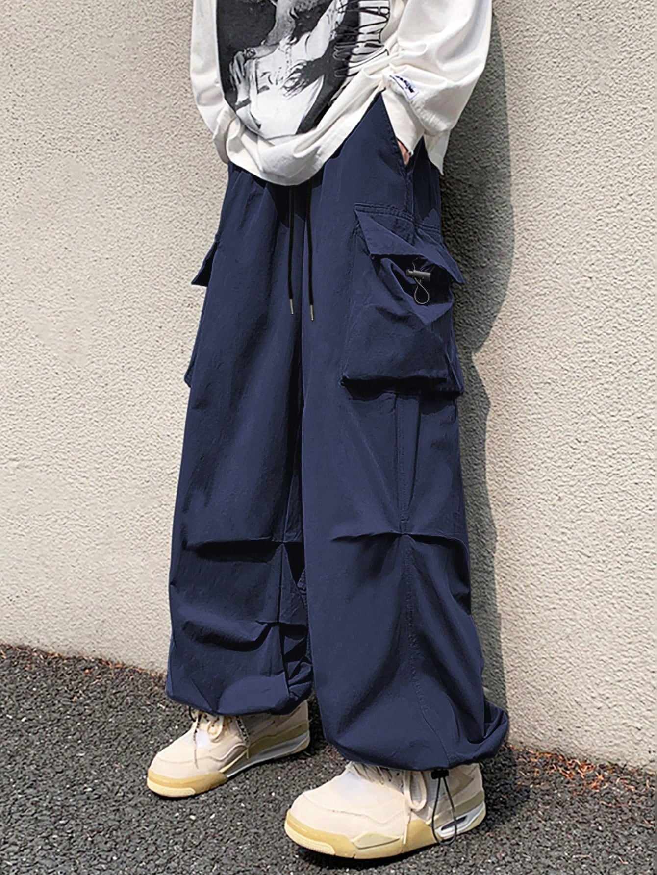 بنطلون كارجو جيب جانبي قلاب رباط خصر للرجال