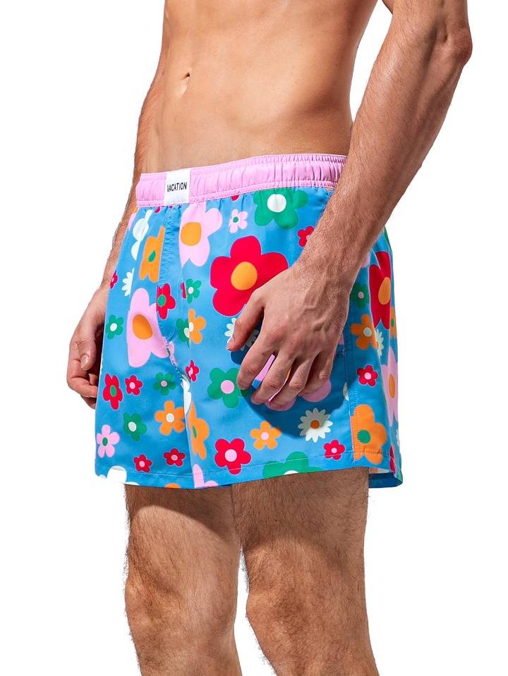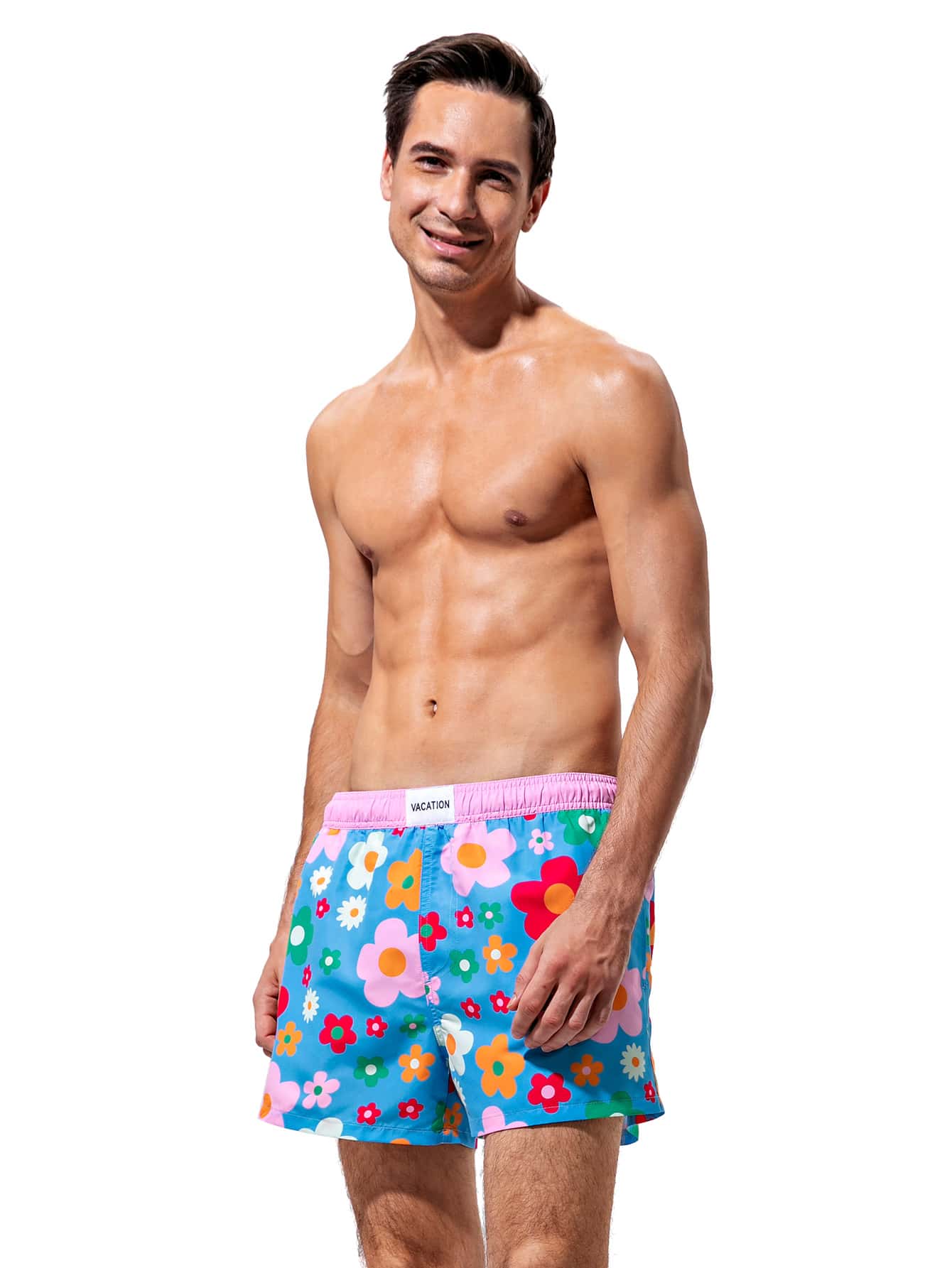 شورت سباحة ترانك طباعة الأزهار تفاصيل مرقع بعبارة للرجال