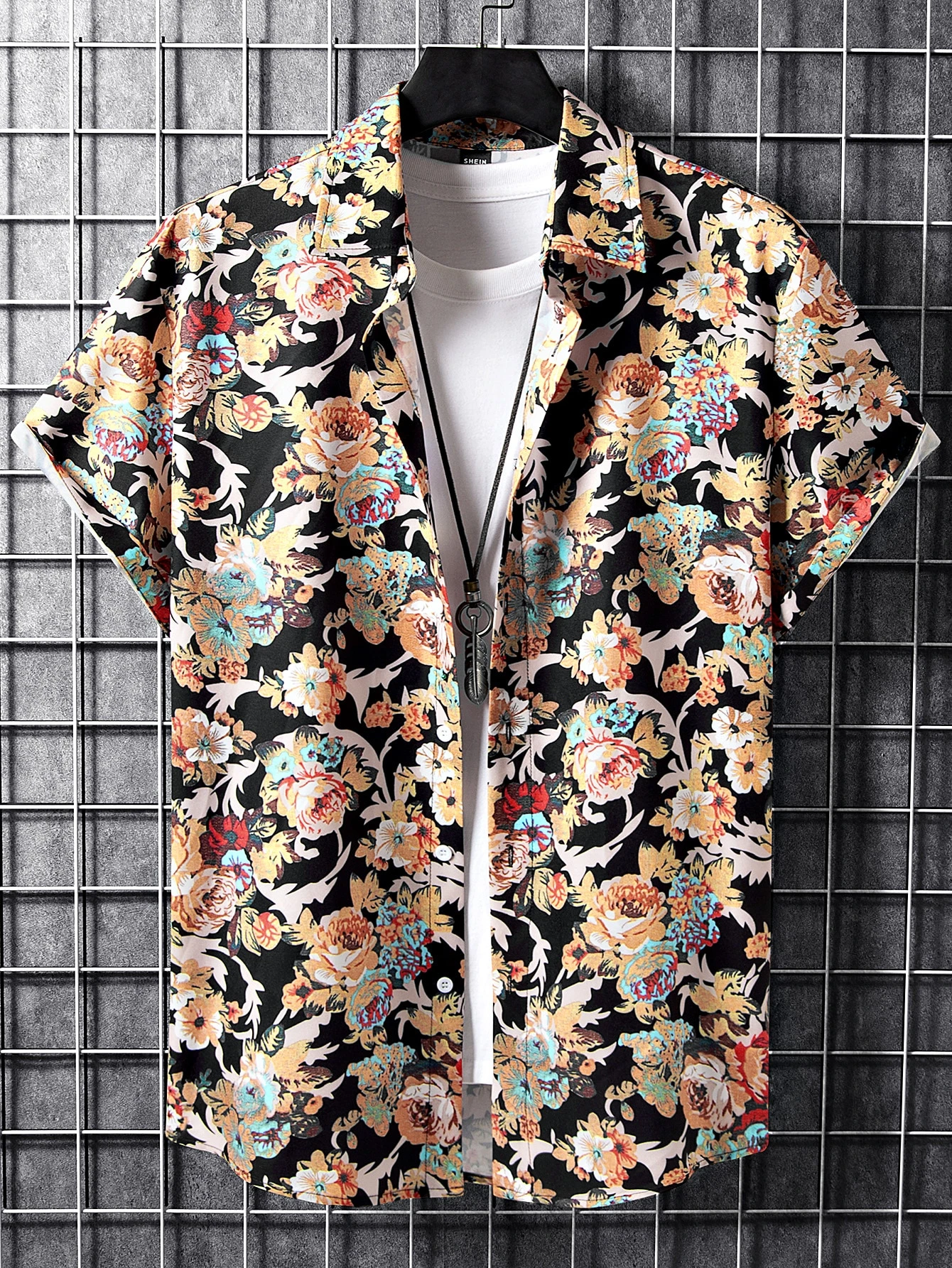 قميص طباعة الأزهار بدون تي شيرت للرجال