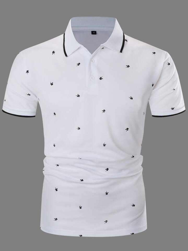 قميص بولو طباعة الأزهار مقلم مخطط للرجال