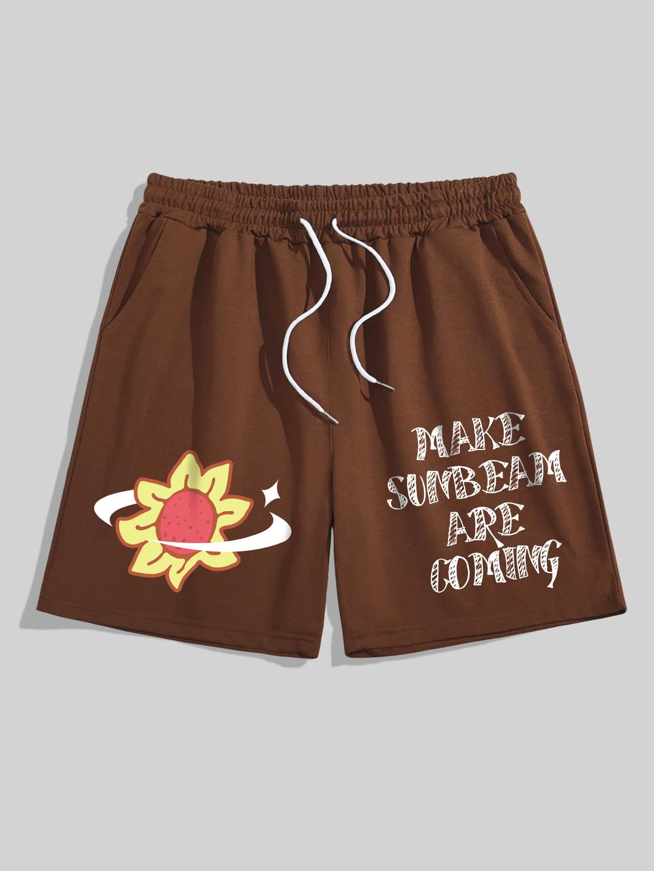بنطلون قصير بجرافيك شعار وزهر رباط خصر للشباب