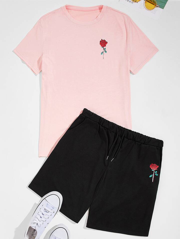 شورت تريك برباط مع تي شيرت مزهر للرجال