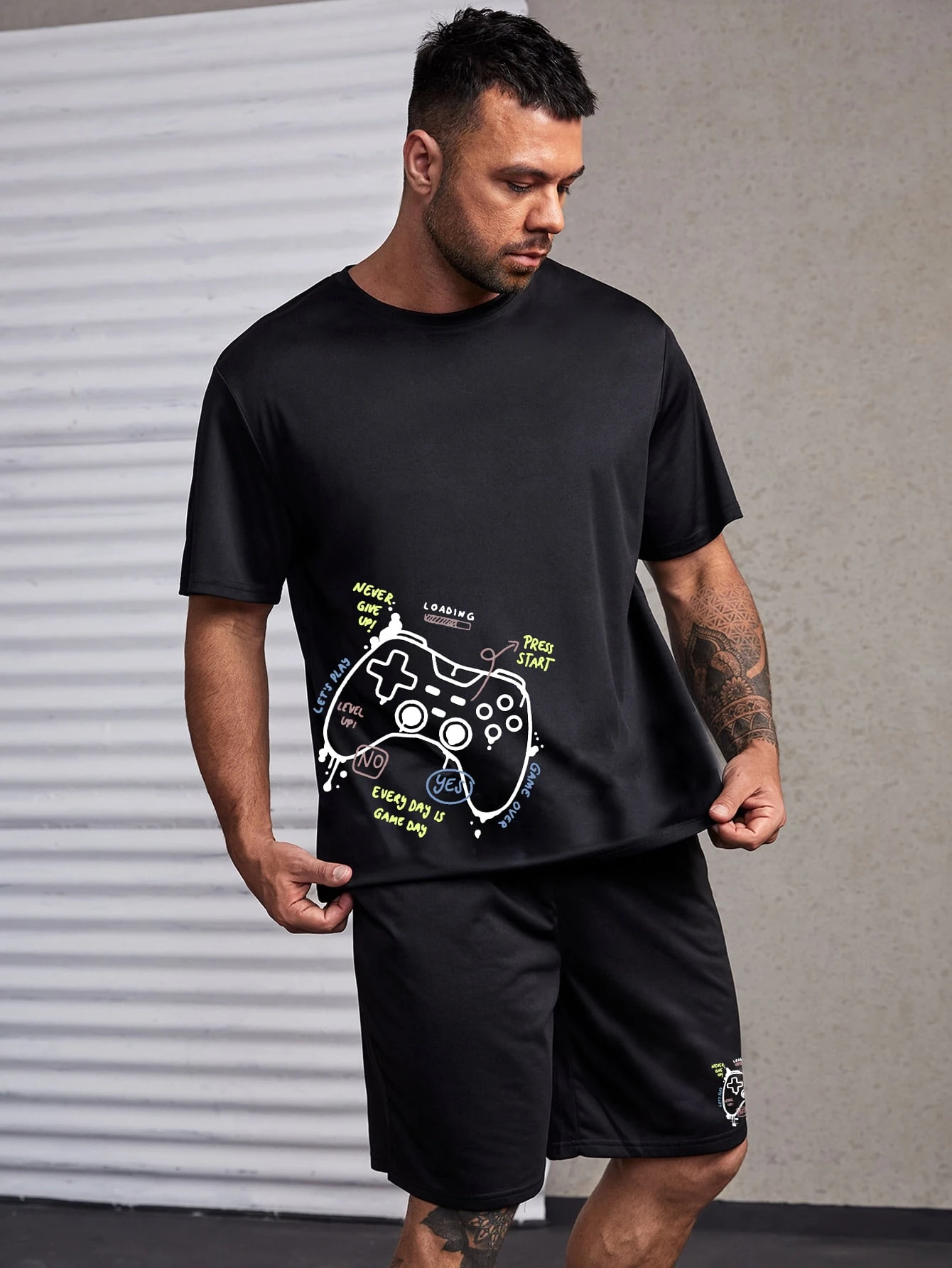 للرجال لوحة الألعاب مع بطباعة شعار تي شيرت مع شورتات برباط