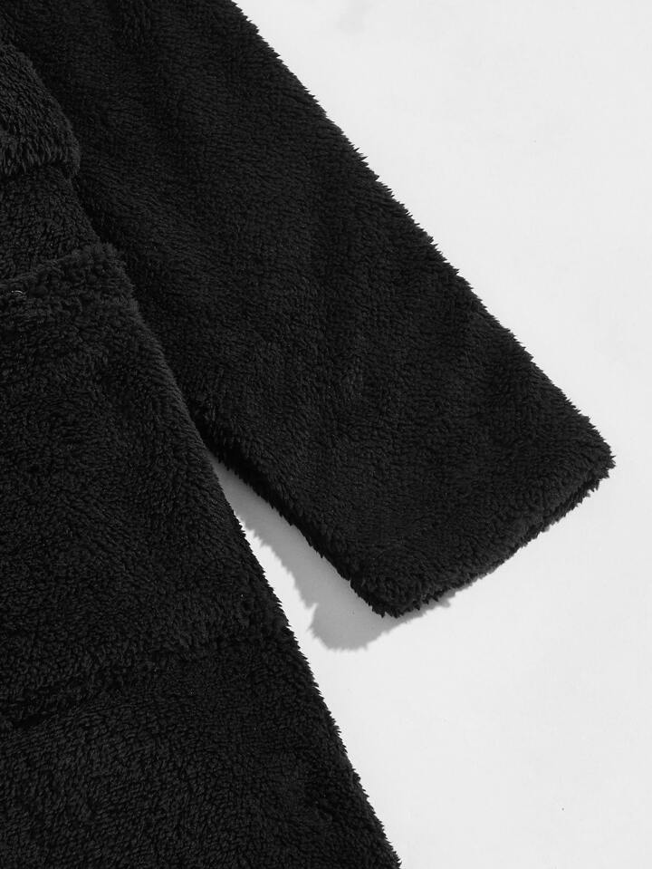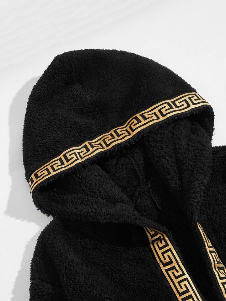 هودي مقنع تيدي مقاس كبير بحزام وبلوحة بشريط اغريقي