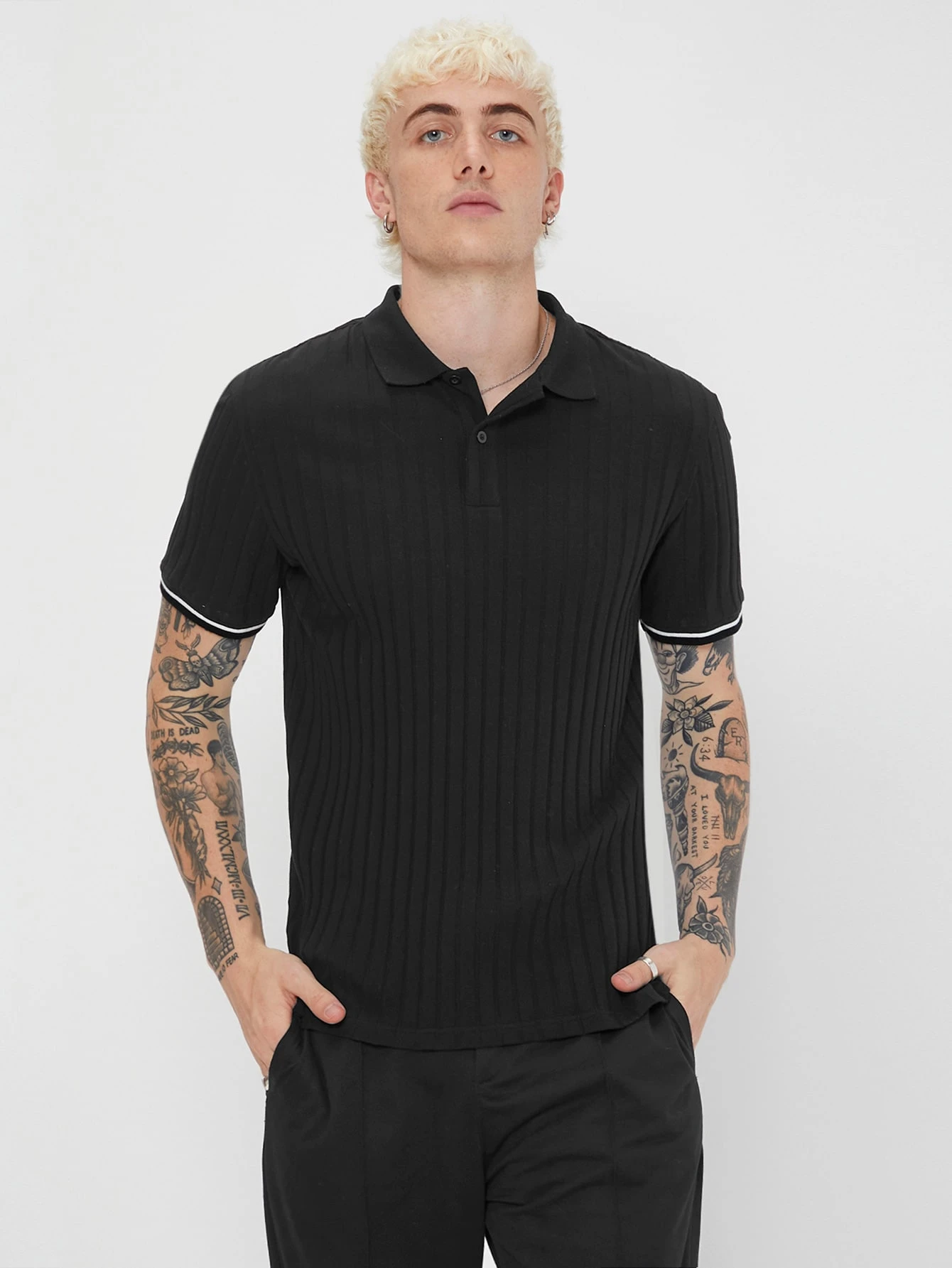 قميص بولو قطن ازرار نصف محبوك مضلع للرجال