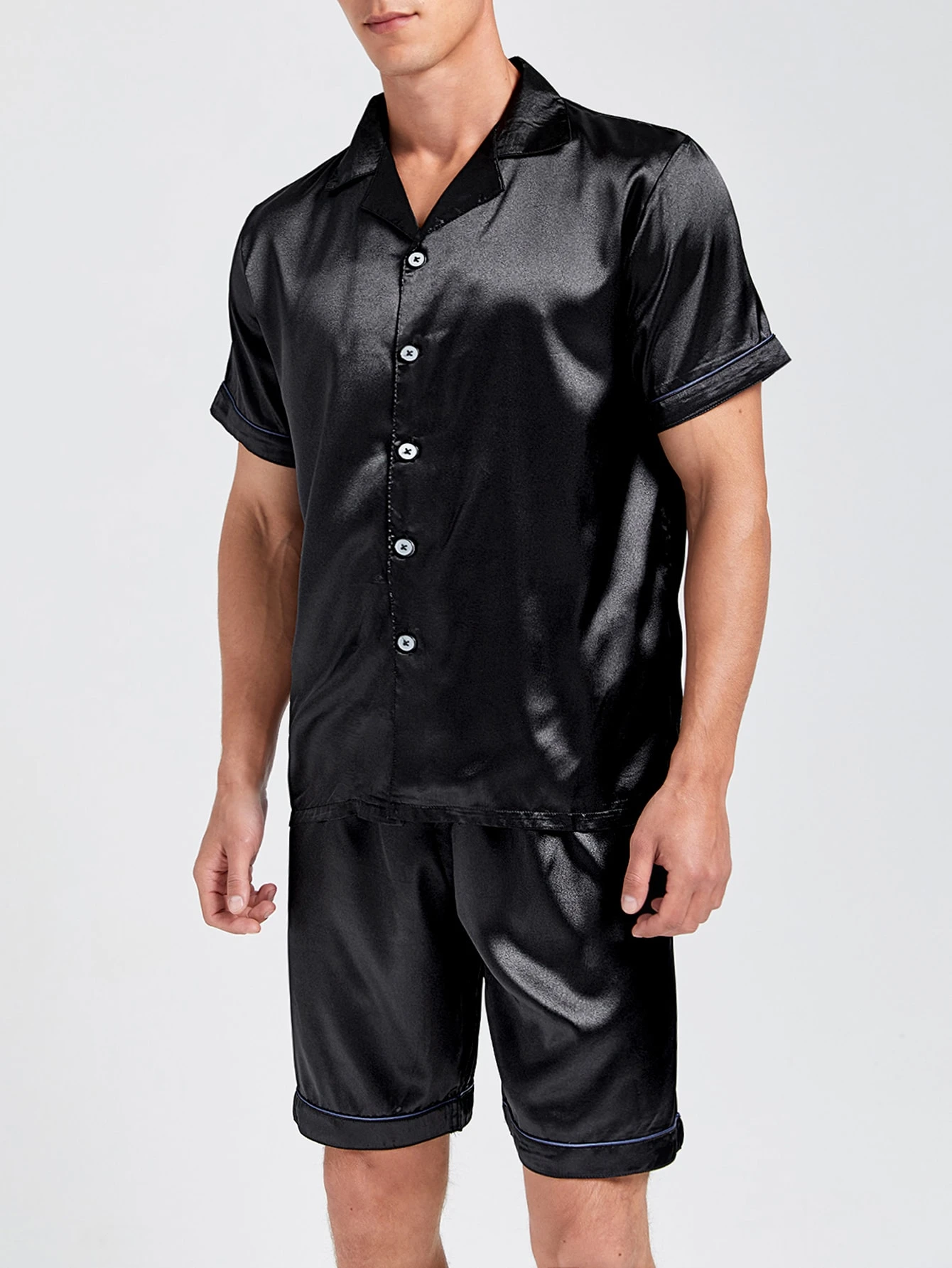طقم بيجامة ياقة مطوي مسنن للرجال