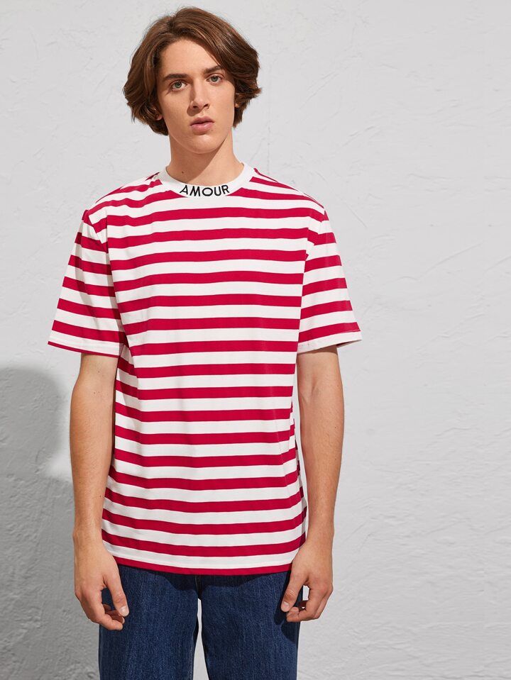 ملابس علوية كاجوال قصير الأكمام ذو تطريز حرفي على الياقة وشرائط ملونة، هدية للصديق