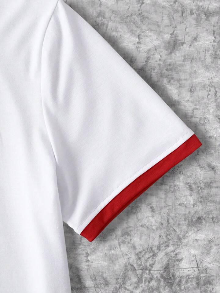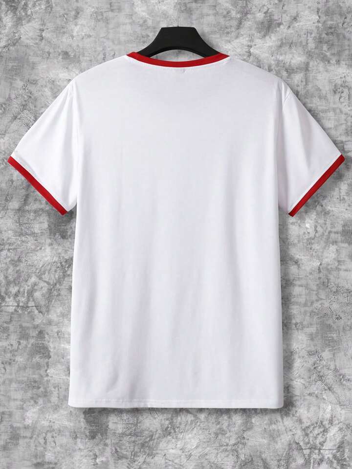 تي شيرت بجرافيك شخصية وعبارة مقلم متباين للرجال