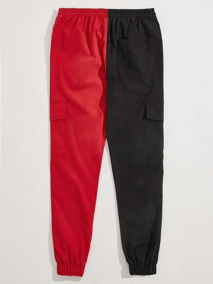 بنطلون كارجو بالوان متجانسة بجرافيك نار عبارة للشباب