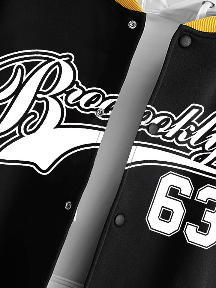 سترة الكلية بطباعة أحرف ألوان متباينة منخفض الاكتاف بدون هوديي للشباب