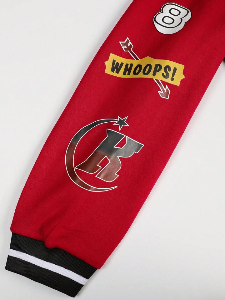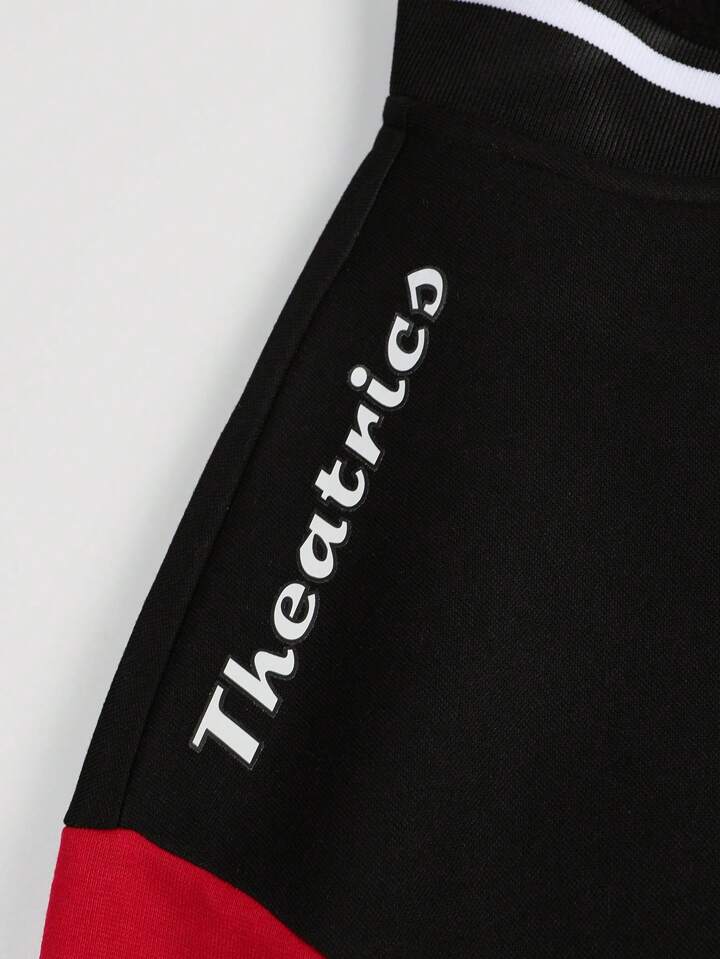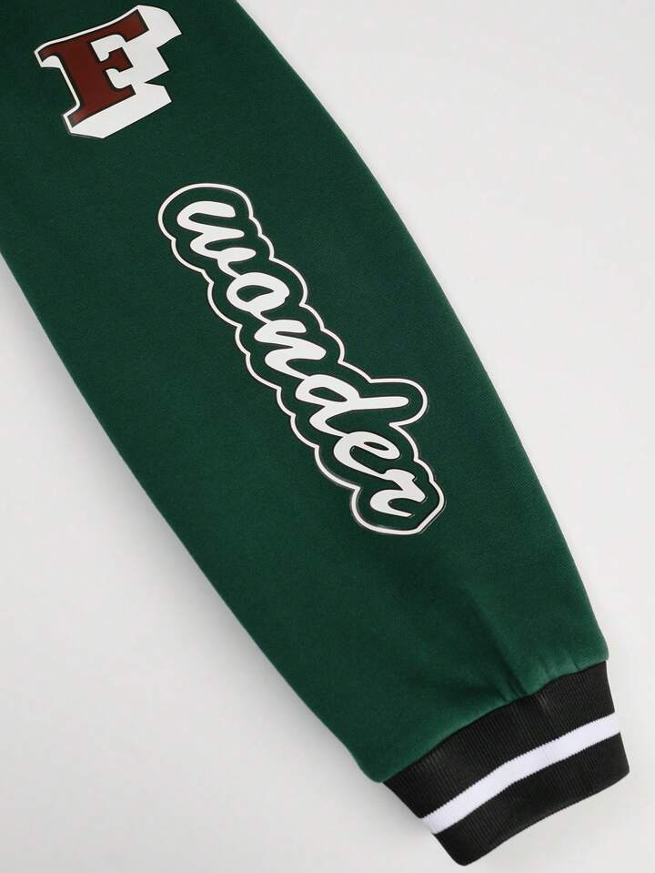 سترة الكلية بطباعة أحرف ألوان متباينة منخفض الاكتاف بدون هوديي للرجال