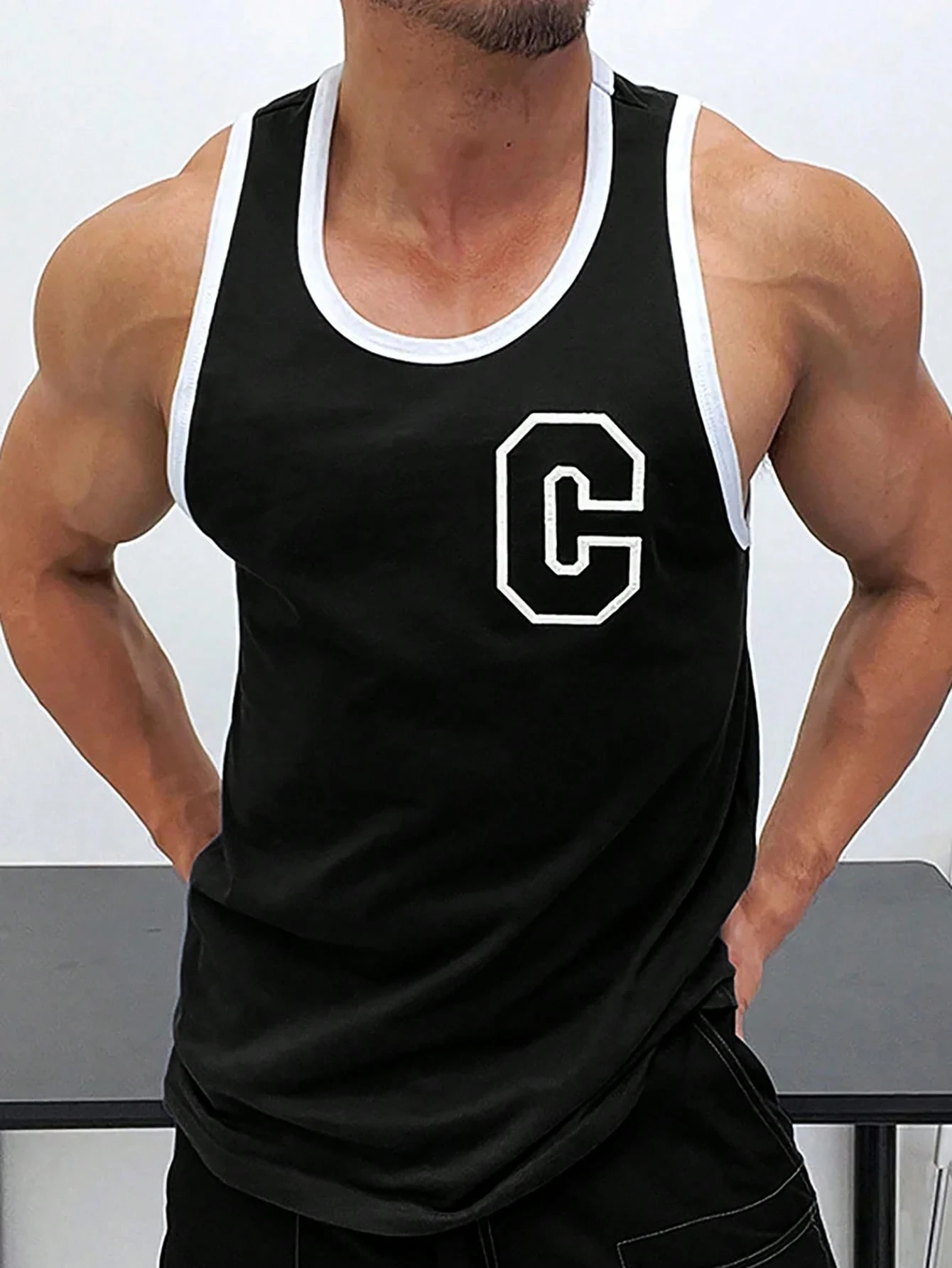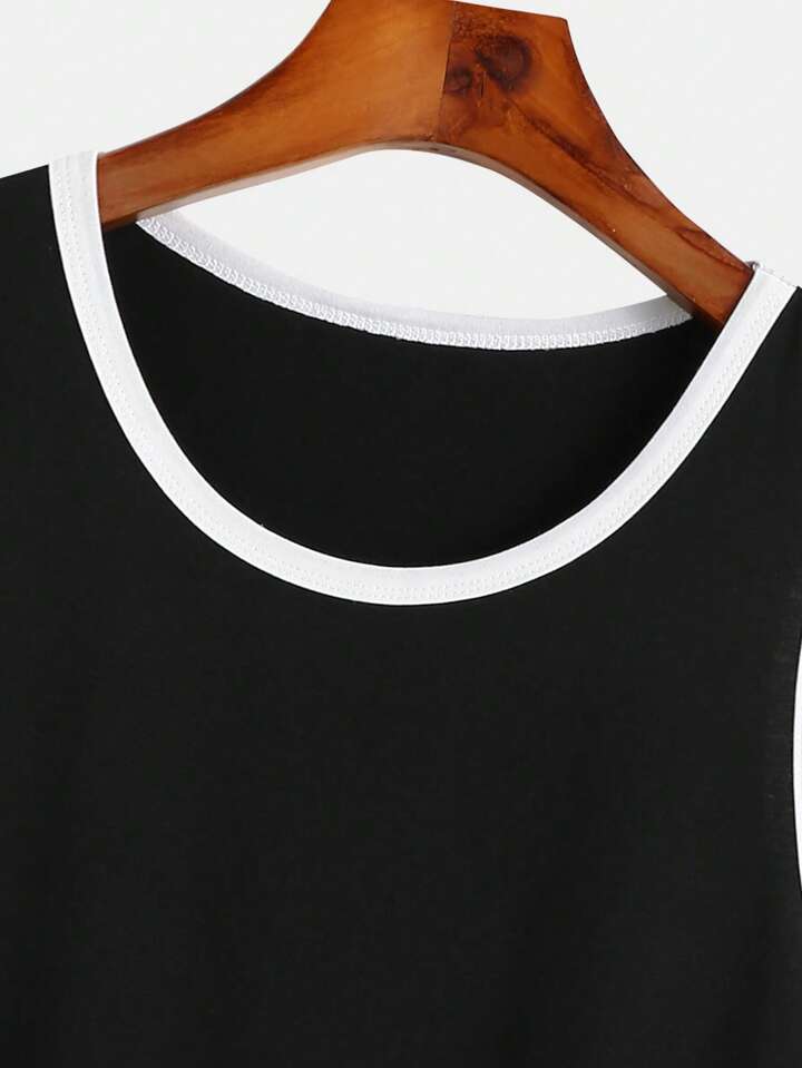 لباس علوي تانك بطباعة أحرف شريط متباين للرجال