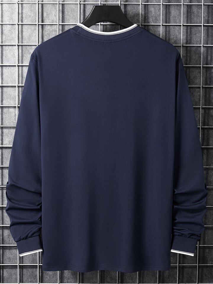 تي شيرت بطباعة أحرف مقلم متباين بدون قلادة للرجال