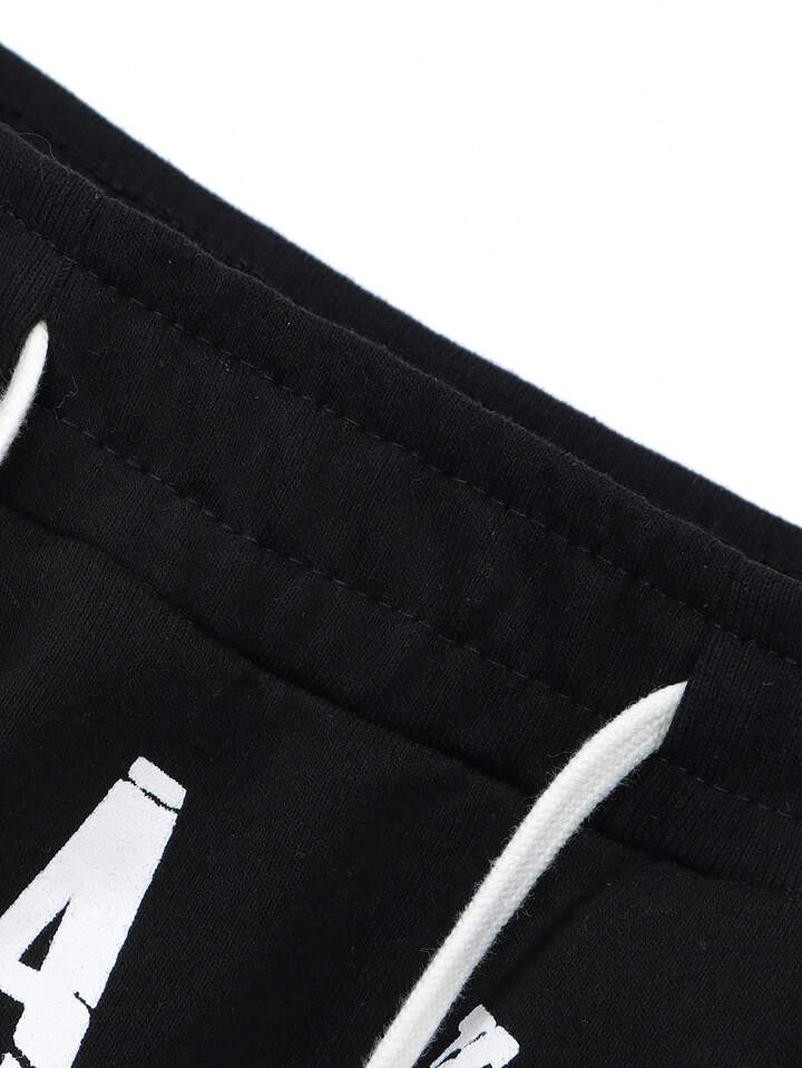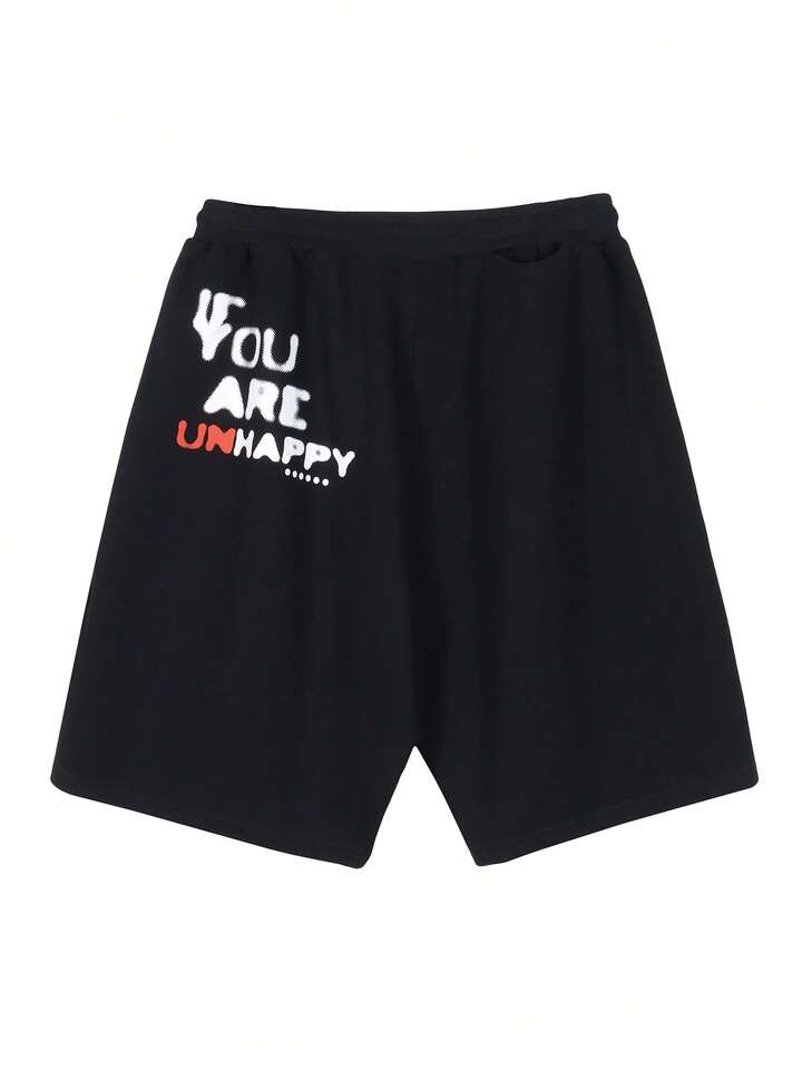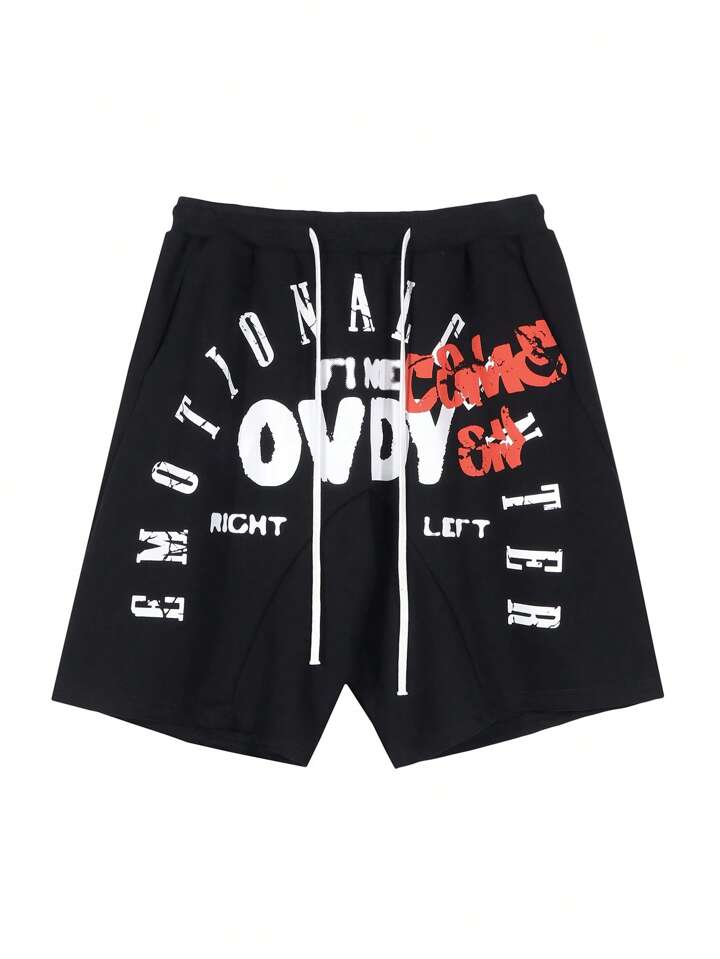 بنطلون قصير بطباعة أحرف رباط خصر للرجال