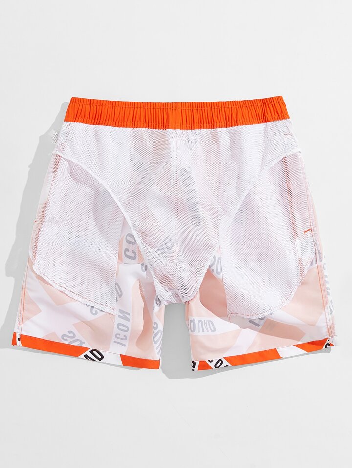سراويل سباحة للرجال بنقشة حرفي على خصر بسحاب, على الطراز الهاواي
