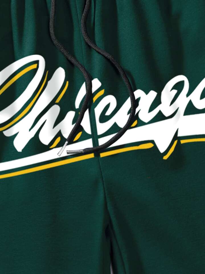 شورت رباط الخصر بجرافيك حرفي مزين بشريط مخطط للرجال