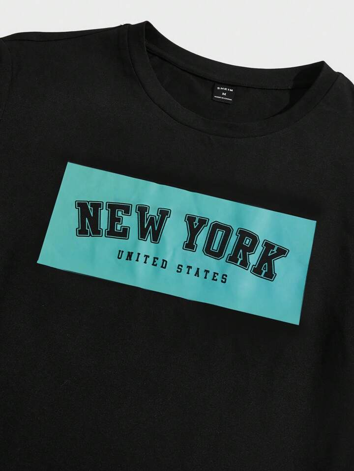 للرجال بطباعة أحرف تي شيرت و رباط خصر بنطلون قصير