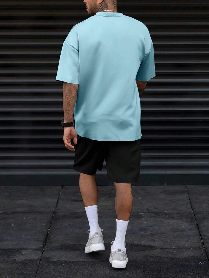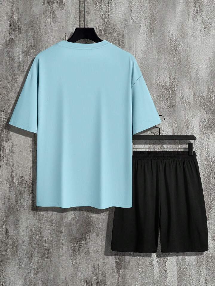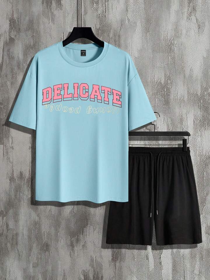 للرجال بطباعة أحرف تي شيرت & رباط خصر بنطلون قصير