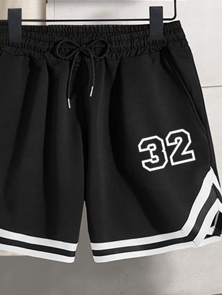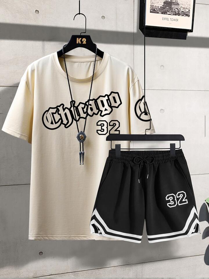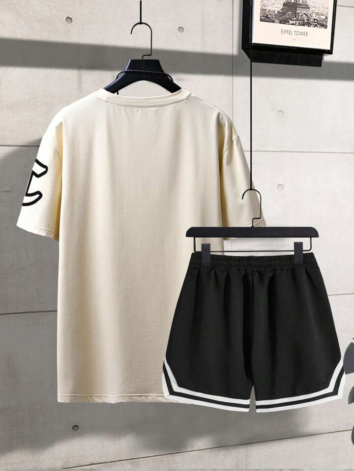 للرجال بطباعة أحرف تي شيرت و مقلم مخطط بنطلون قصير