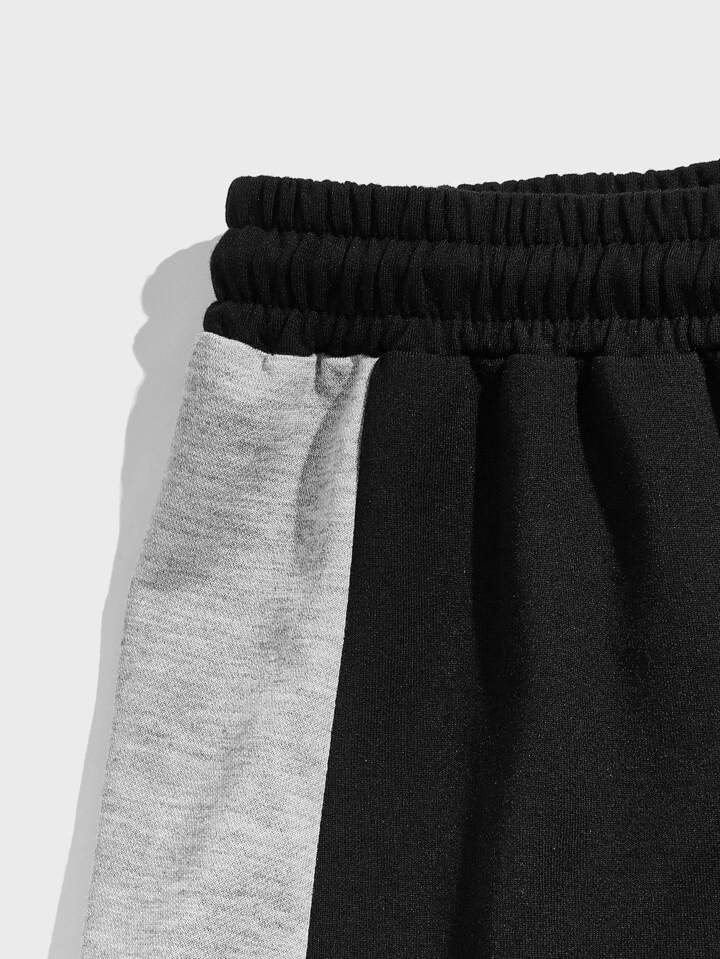 بنطلون قصير مدرز بعبارة جيب جانبي قلاب رباط خصر للشباب