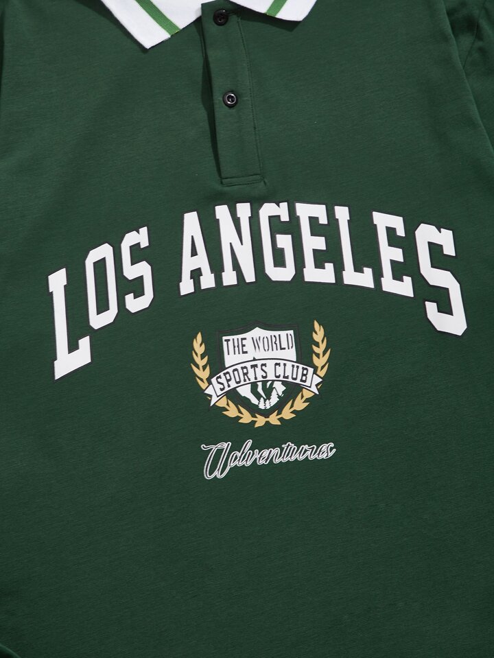 قميص بولو كوتون طباعة شعار وحرف بفضفاض للرجال