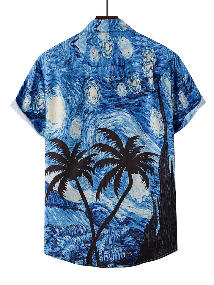 قميص بطباعة بجرافيك زيتي أزرار علوية للرجال