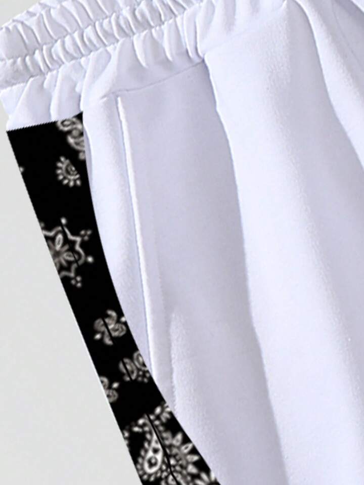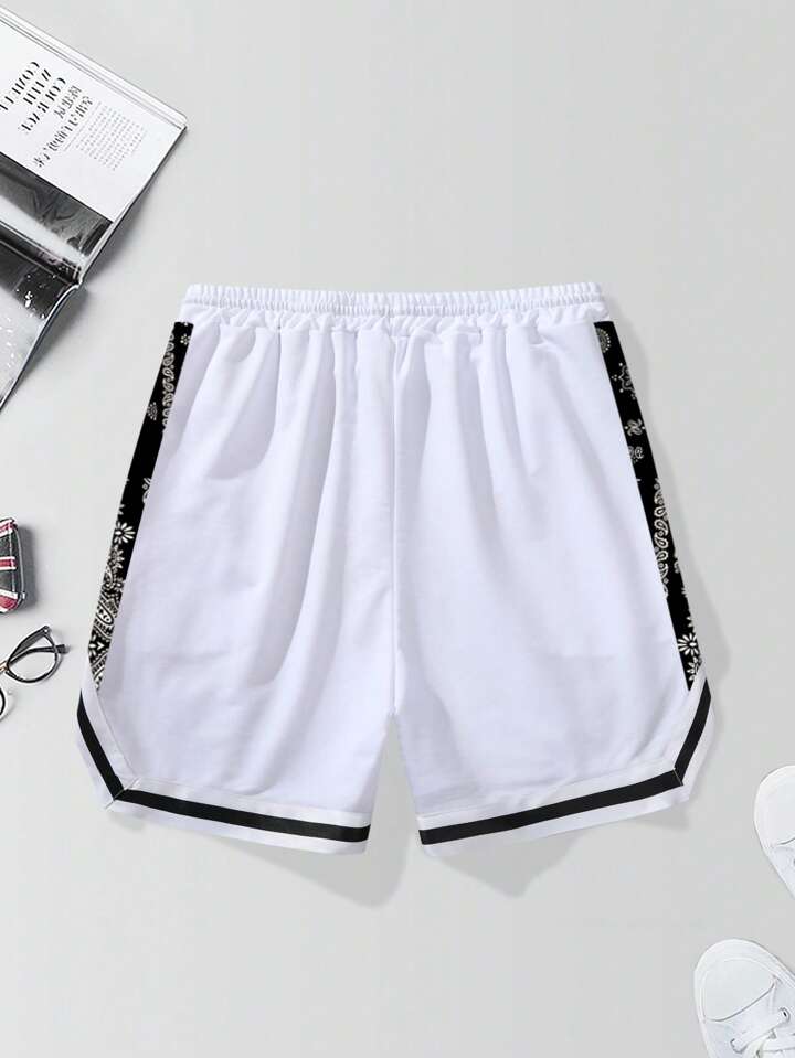 بنطلون قصير طباعة بيزلي مقلم مخطط رباط خصر بشريط جانبي متباين للرجال