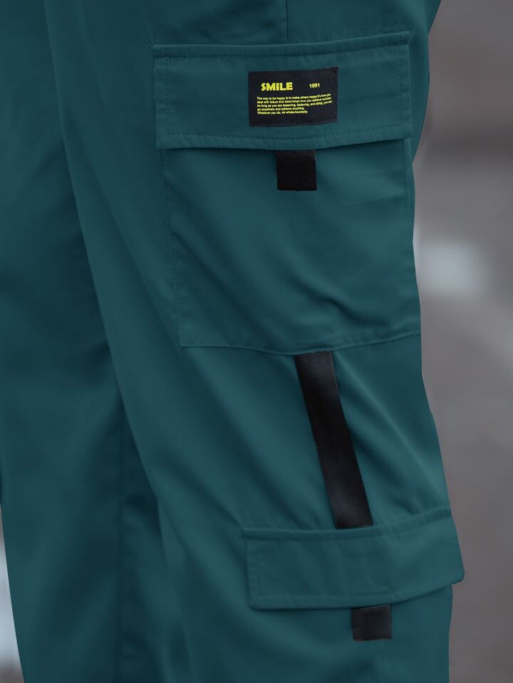 سروال شحن من الرجال فضفاضة مع تفاصيل الرقع وخصر خيطي