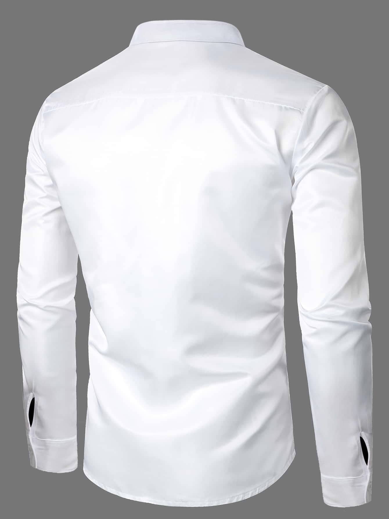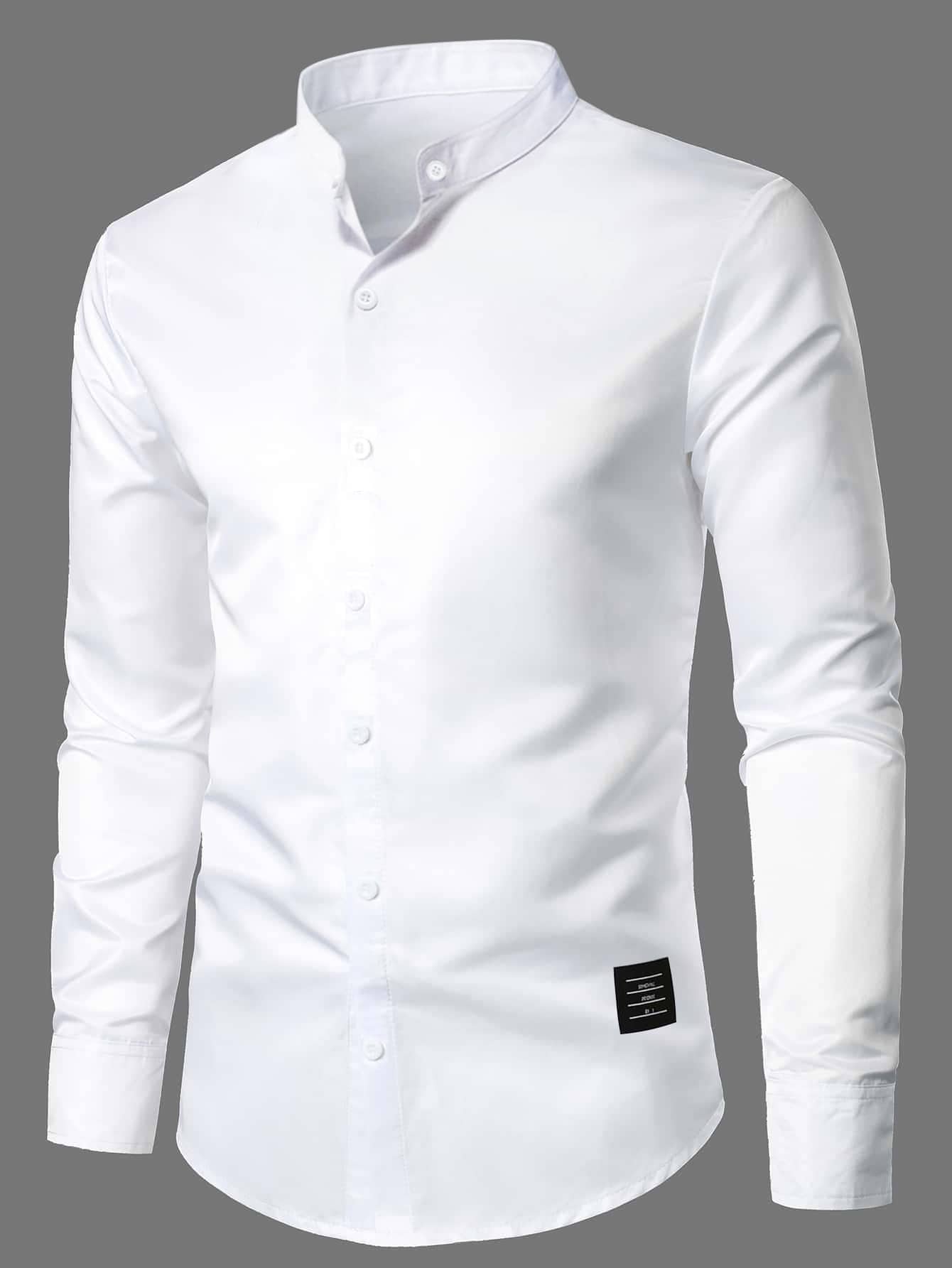 قميص بتفاصيل مرقع أزرار علوية للرجال