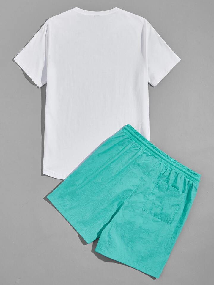 للرجال رسم تي شيرت و رباط خصر طقم شورت